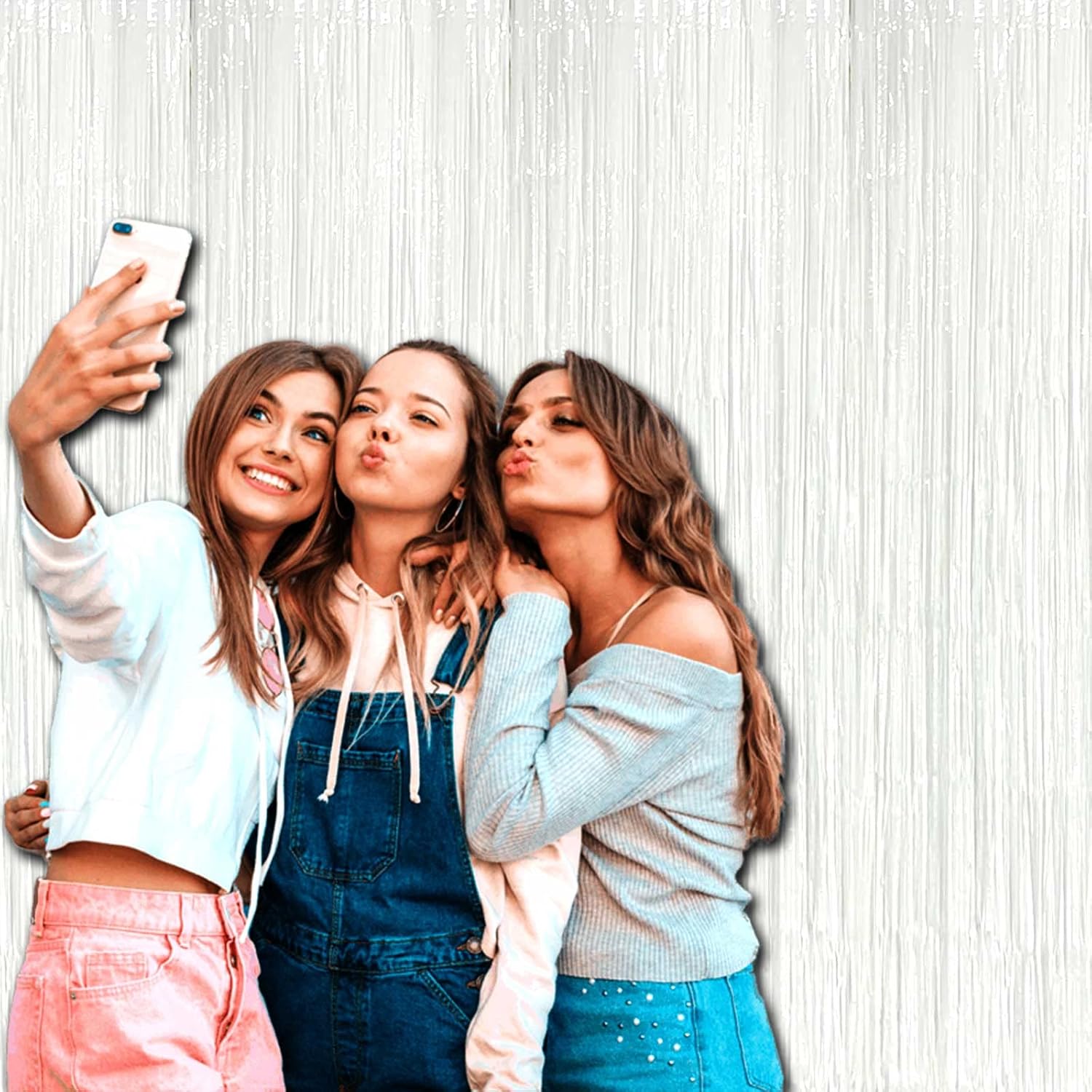 4 Pack Macaron White Foil Fringe Curtain Backdrop, 3.28Ft x 8.2Ft Foil Fringe Streamers Curtains for Party, Photo Booth milky milky