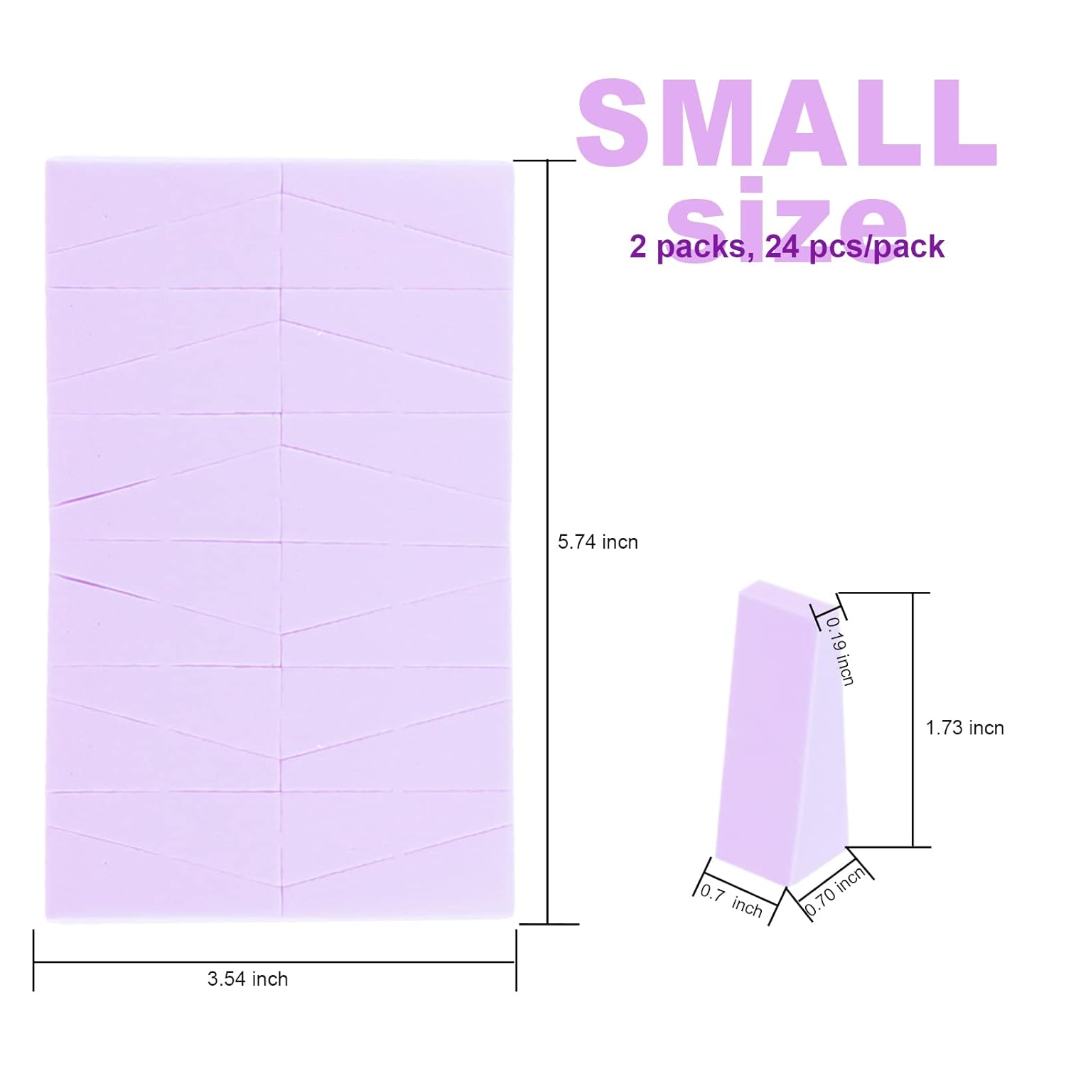 • Makeup Sponges Wedges: 2 colors, 48 pieces, the small, wedge shape makeup sponge makes it easy to apply product to those hard to reach areas such as underneath the eyes. Each pack has 24 precut wedges so you can easily pull them apart to provide each client with a hygienic makeup experience without sacrificing quality or performance.