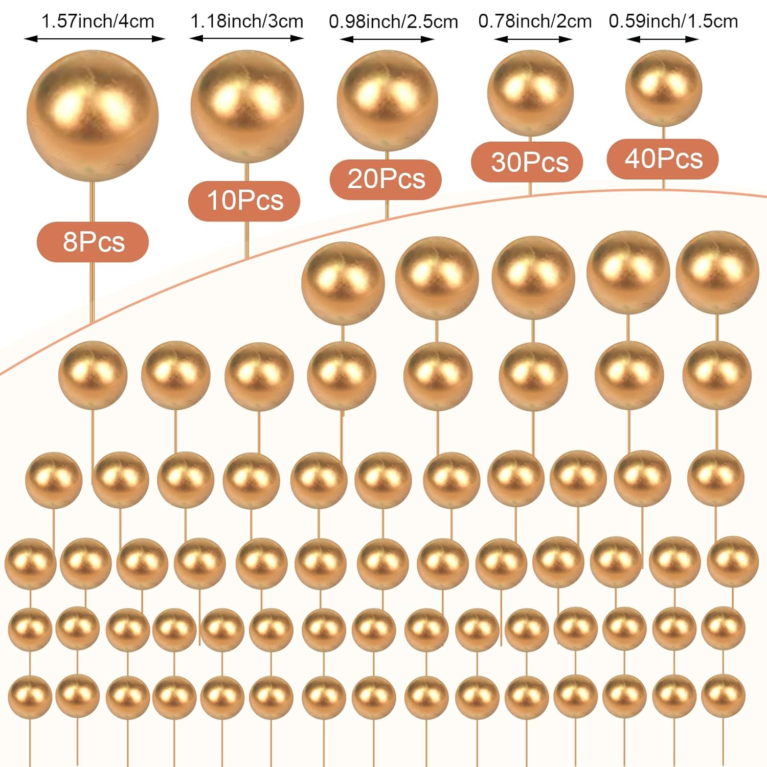 • Various Sizes: these ball cake toppers come in 5 different sizes, including 4 cm/ 1.57 inch, 3 cm/ 1.18 inch, 2.5 cm/ 0.98 inch, 2 cm/ 0.79 inch, 1.5 cm/ 0.59 inch; You can make a proper position arrangement based on the size and shape of your cake, a variety of different sizes and different colors to suit your cake decorating needs
