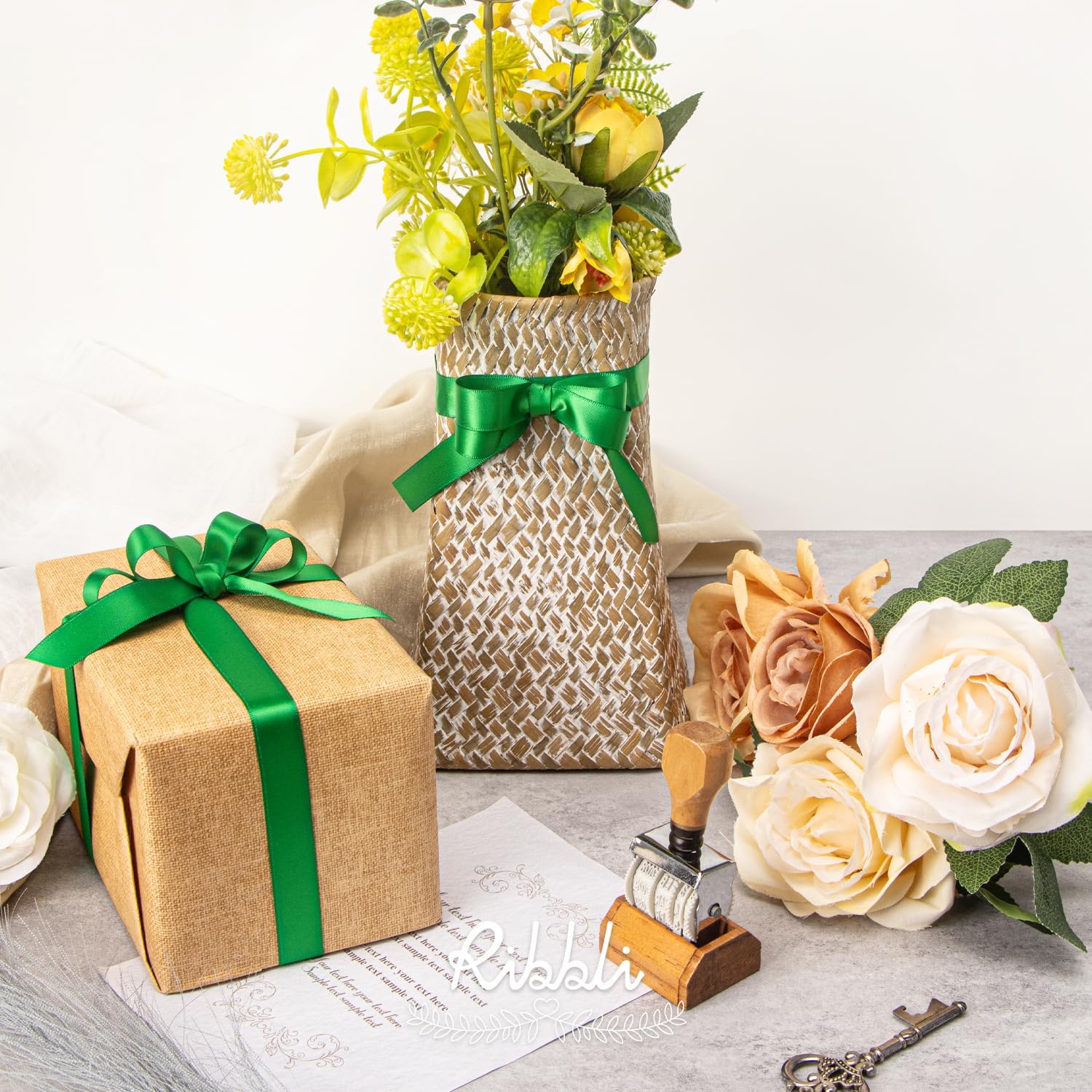 Ribbli Emerald Green Satin Ribbon 5/8 inch x Continuous 25 Yards,Double Faced Satin Use for Craft, Gift Wrapping, Christmas Ornaments, Hair Bows, Bouquet Bows