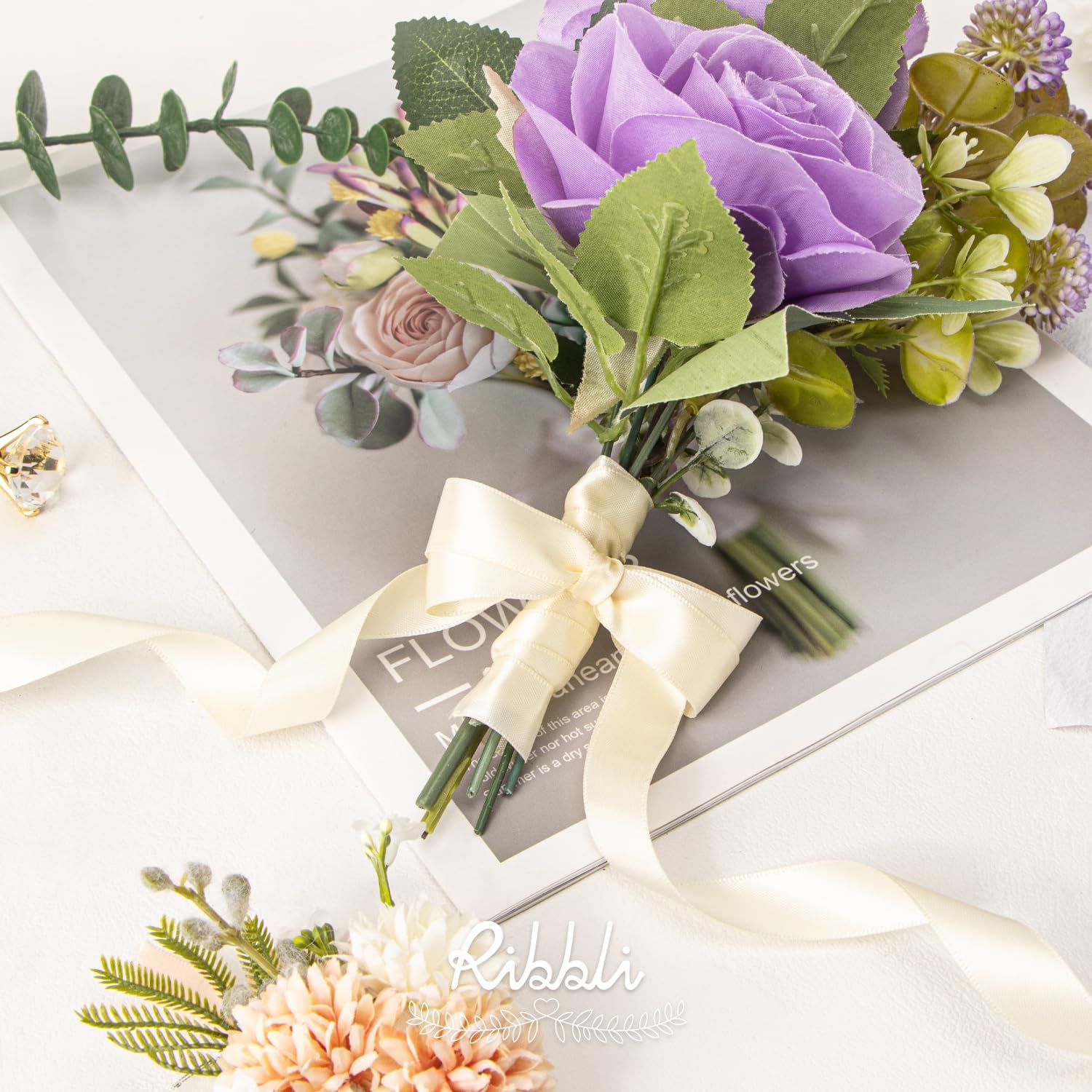 Ribbli Ivory Satin Ribbon 5/8 inch x Continuous 25 Yards,Double Faced Satin Use for Craft, Gift Wrapping, Christmas Ornaments, Hair Bows, Bouquet Bows