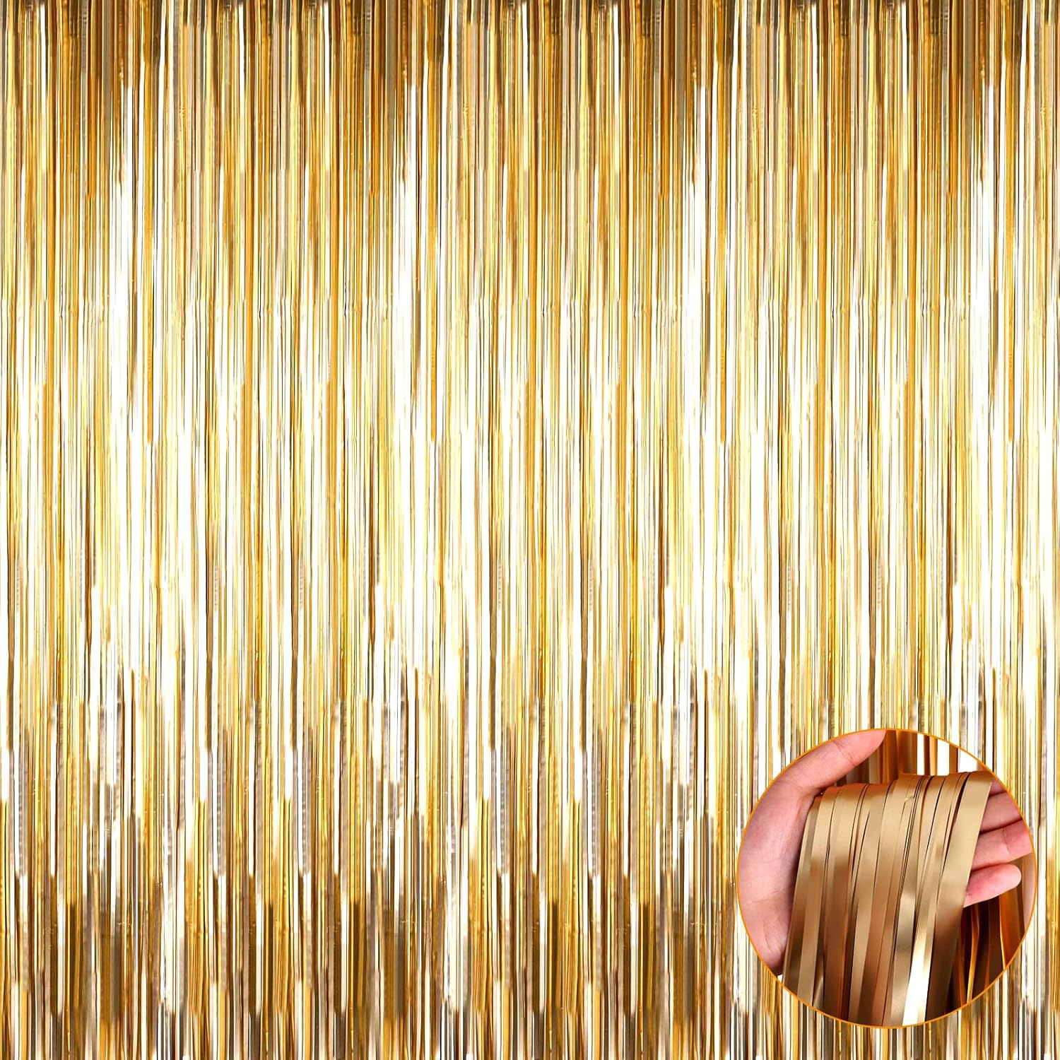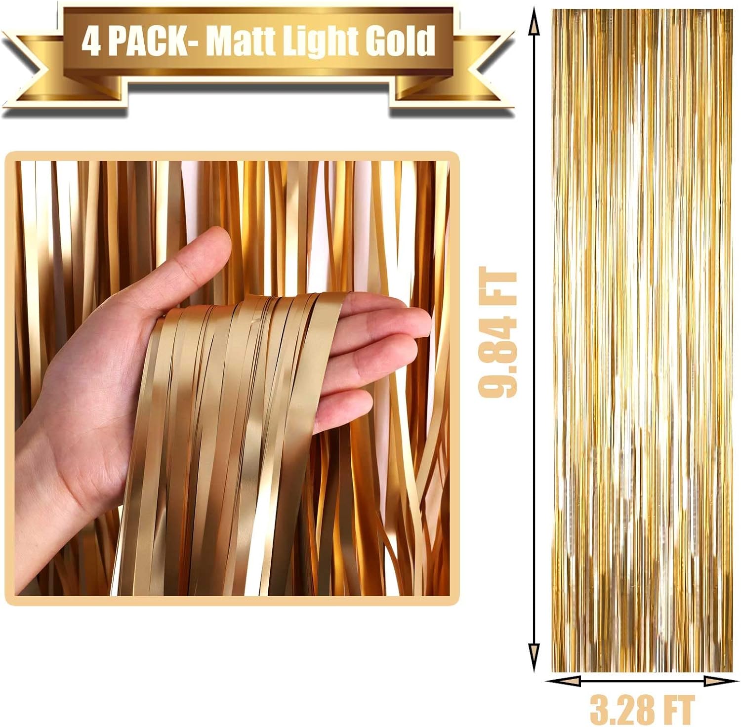 4 Pack Champagne Gold Foil Fringe Curtain Backdrop, 3.3Ft x 9.8Ft Metallic Tinsel Foil Streamers Curtains for Photo Booth, Wedding, Thanksgiving, Birthday, Christmas, Halloween Party Decoration