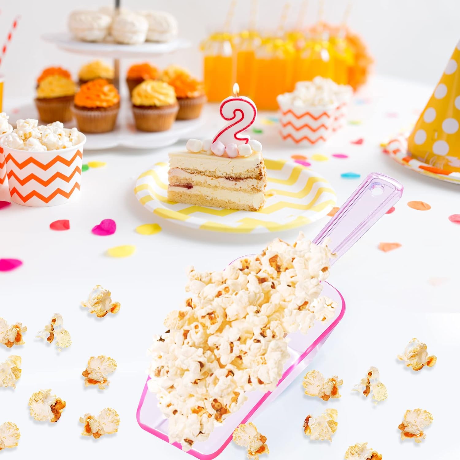 • MULTIPURPOSE: Containers scoops are perfect for ice cube, candy bar, popcorn bar, coffee beans, fruit platter, flour, sugar, rice, wheat, powders, cereal loops, oat, nuts, baking ingredients, dry goods, pet food etc. Suitable for party, wedding, buffet and kitchen