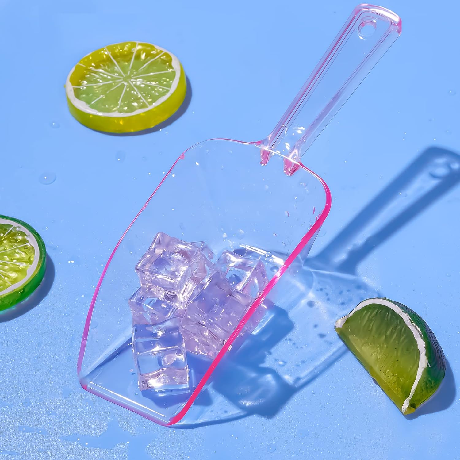 Ice Scoop for Freezer, Clear Pink Plastic Candy Buffet Scoopers, Acrylic Multi-purpose Kitchen Scoop for Party Wedding Popcorn Cookie Dry Goods, 6 Pack 7.5 In