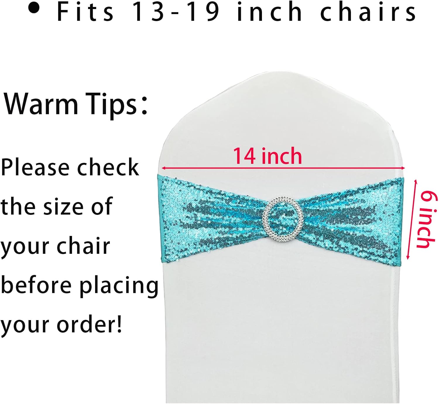 100 Pcs Chair Sashes Sequin Stretch Chair Bands Spandex Polyester Bows for Party Hotel Wedding Banquets Decoration - Aqua