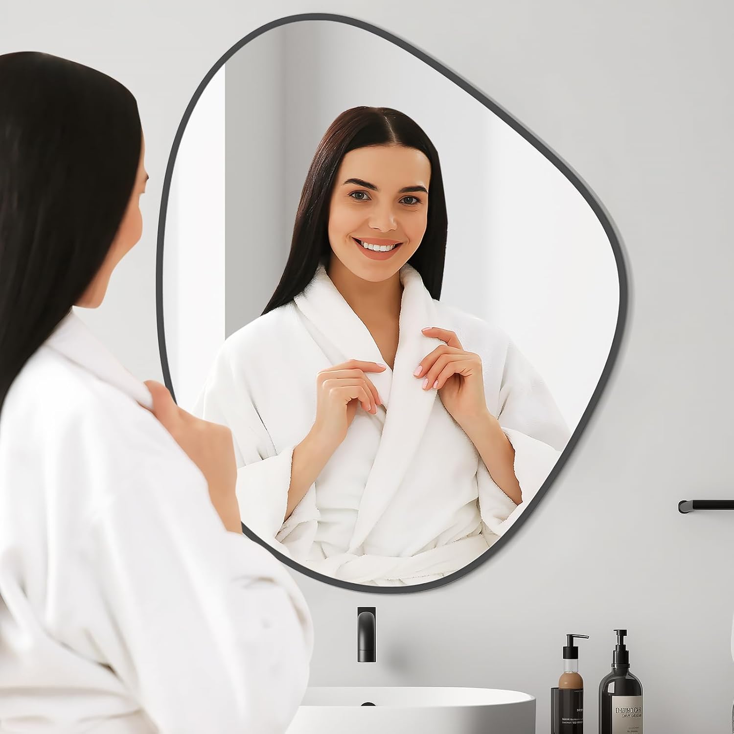 WallBeyond Asymmetrical Mirror, Irregular Wall Mirror for Bathroom, Abstract Wall Mirrors Decorative for Bedroom Living Room Entryway Hall, Mirrors for Wall Decor 28" H x 23" W, Black