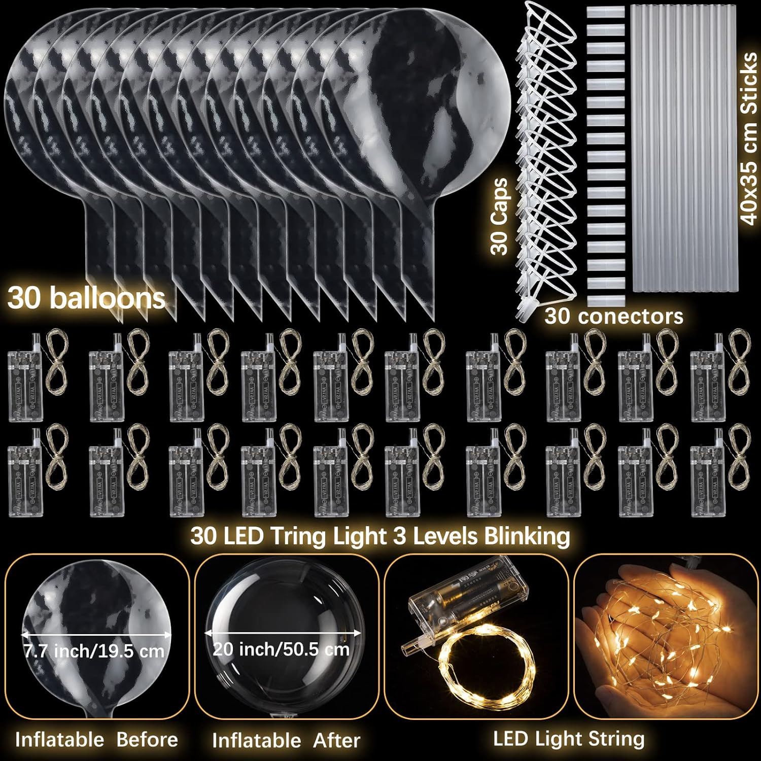 Vinsot 30 Pack LED Bobo Balloons Light Up Balloons Clear Helium Bubble Bobo Glow with String Lights for Parties Birthday Wedding Decoration(Warm Light)