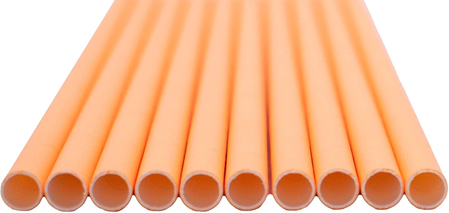 Pack of 300 Pastel Orange Biodegradable 4-Ply Paper Drinking Straws (Compostable, Non-toxic, BPA-free)
