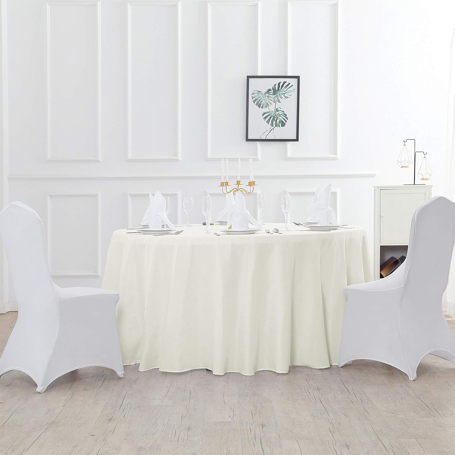 120 inch Round Tablecloth Washable Polyester Table Cloth Decorative Table Cover for Wedding Party Dining Banquet(12 Pack 120 inch,Ivory)