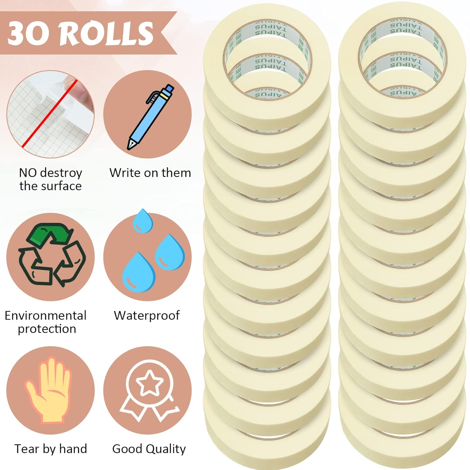 Masking Tape Bulk General Purpose Masking Painting Tape 55 Yards for Painting Home Office School Stationery Arts Crafts Basic Use, Easy Removal(30 Rolls,0.8 Inch)