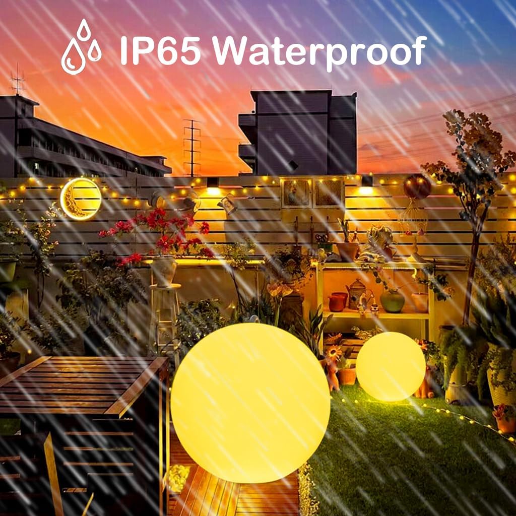 • Weatherproof & Durable: Built to withstand the elements, this rechargeable LED Ball Light is IP65 waterproof, ensuring reliable performance in rain or shine. Its sturdy construction makes it ideal for long-term outdoor use in gardens, patios, and lawns