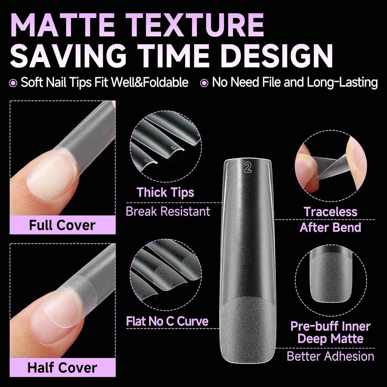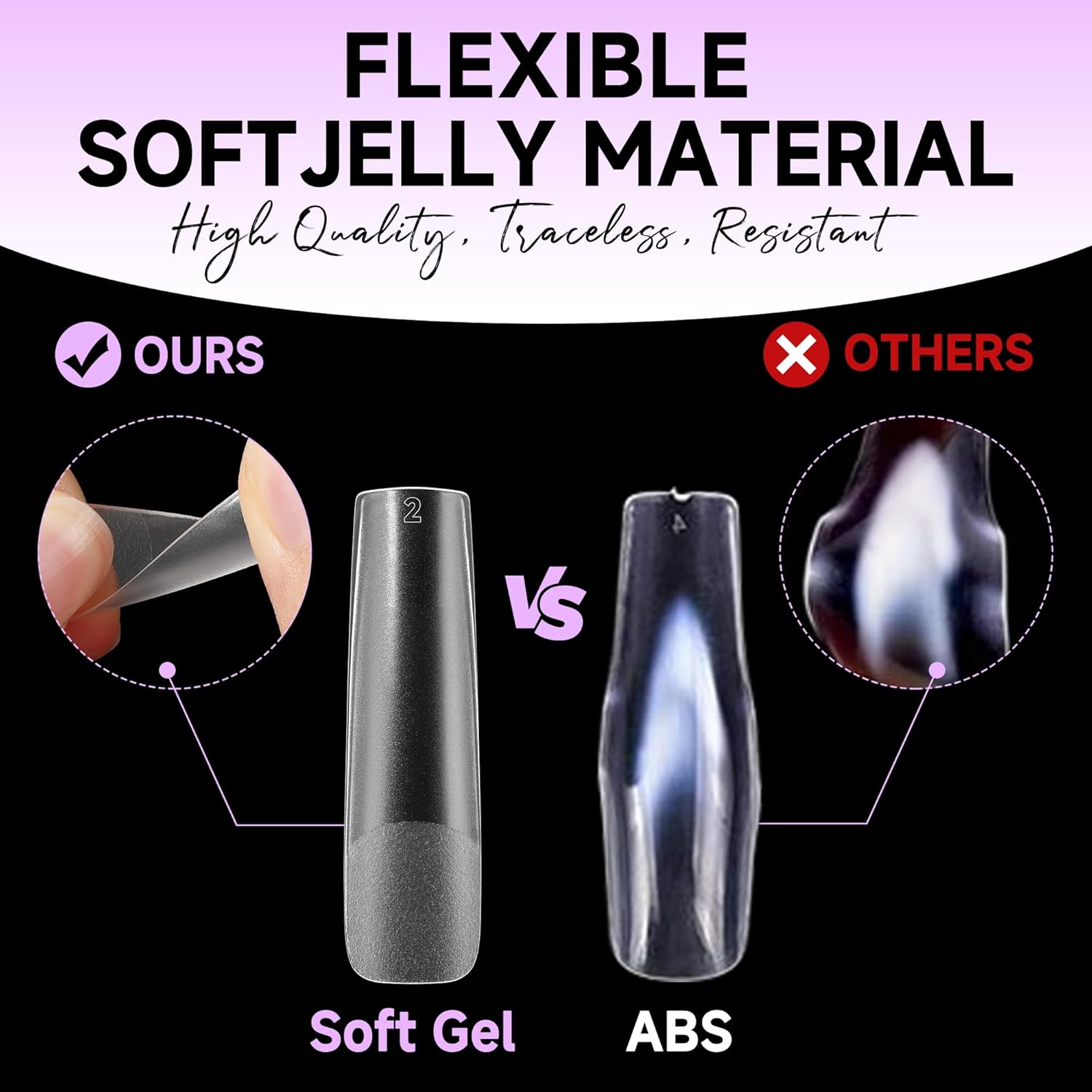 • ❤️Professional Long Square Shape Tips: Great extension Long Square fake tips show a great clear cover with premium innovate material soft gelly tips can be used with nail polish, dip powder, acrylic acrylic powder, easily make salon nail effect instead of dropping money at expensive salon!