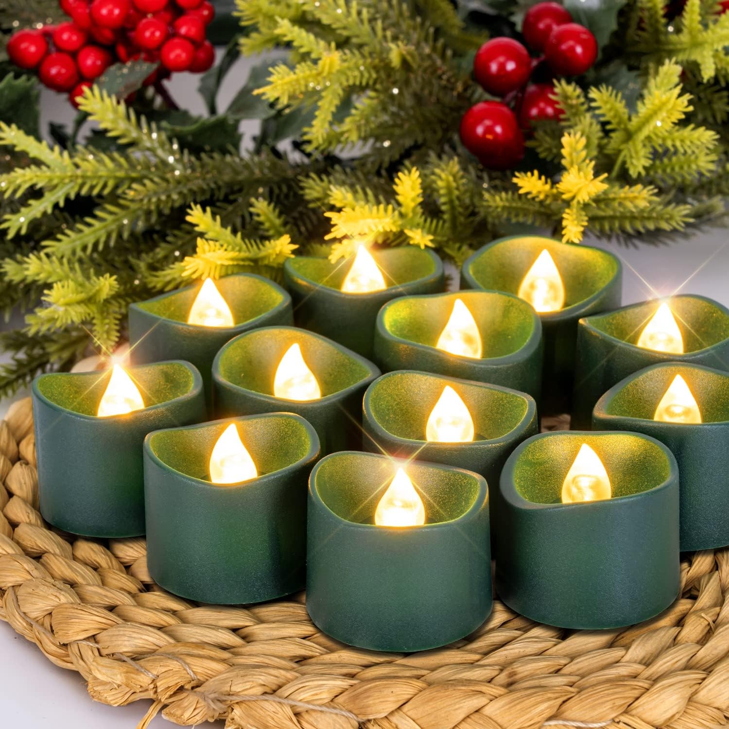 • FESTIVE & INVITING: Homemory green tea lights create a festive, inviting, or serene atmosphere, making them perfect for Christmas, St. Patrick's Day, garden parties, and other seasonal celebrations