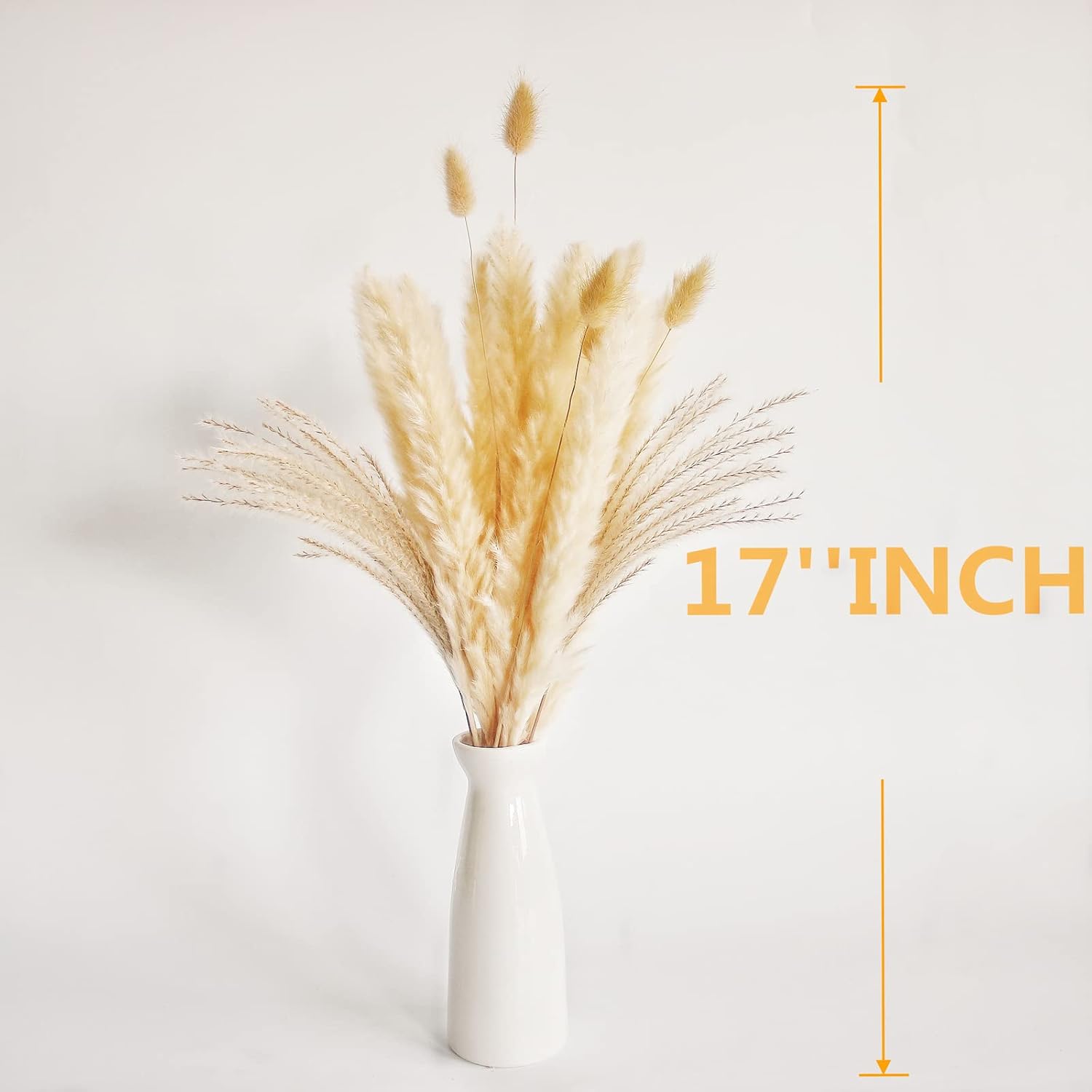 • Elegant accent: cream pampas grass about 17 inches in height, suitable for small and medium-sized pampas grass vase, fall vase filler have natural color overall elegance Smooth, warm color palette has an autumnal atmosphere, pleasant boho party decor style suitable for boho wedding table decor center party living room bedroom kitchen vintage country farmhouse, etc.