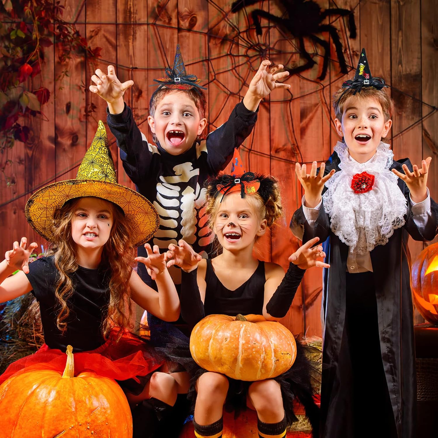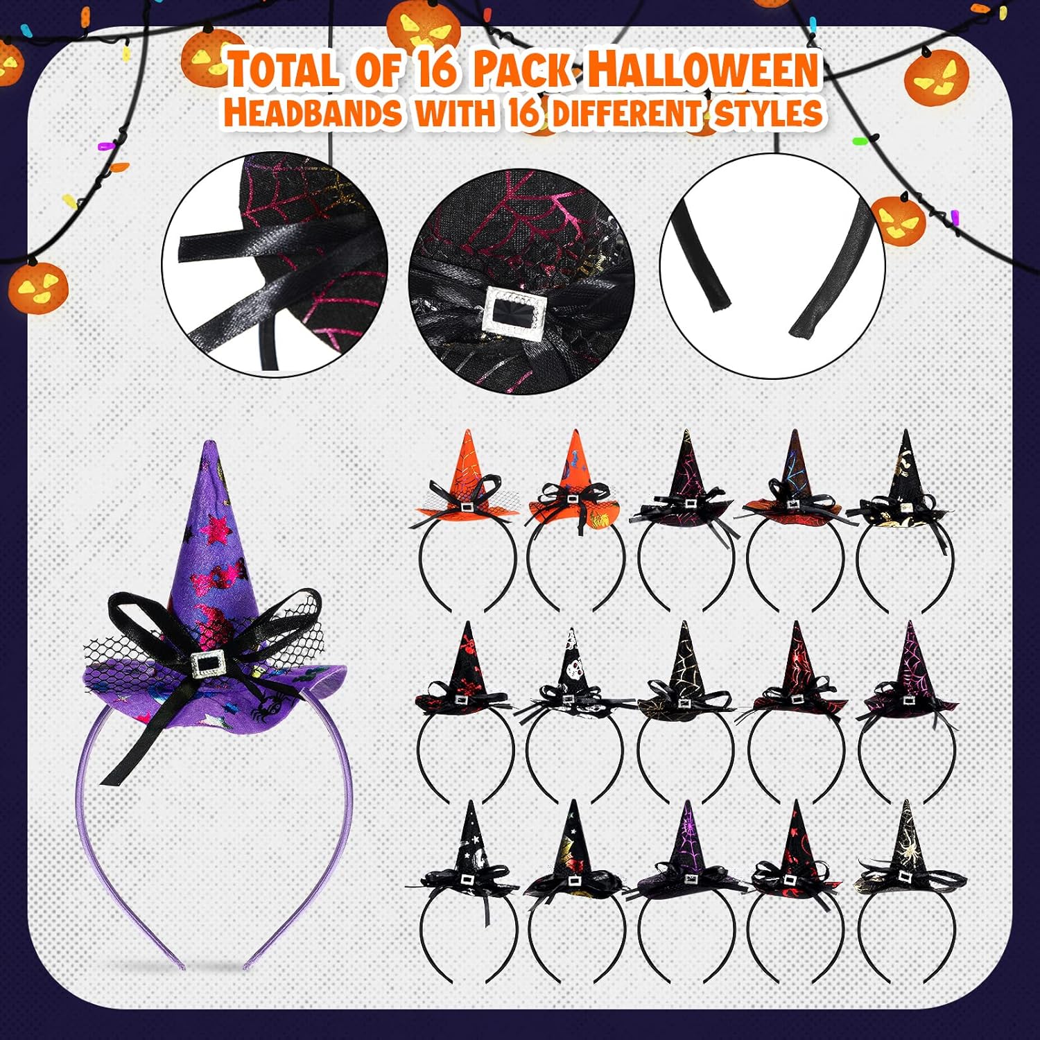 Hanaive 16 Pieces Halloween Headband Witch Hat Headband for Women Halloween Cosplay Witch Costume Hair Accessories