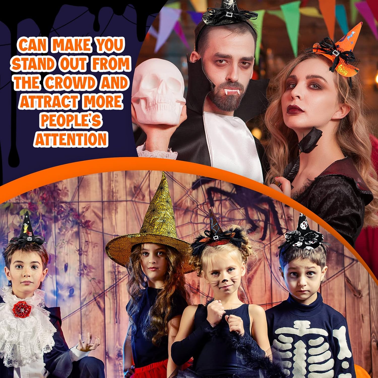 • Total Quantity: this set has a total of 16 pieces of black witch hat headbands, designed with classic Halloween elements, stylish and eye catching, you can use them to warm up your parties, and they can provide you with a variety of choices