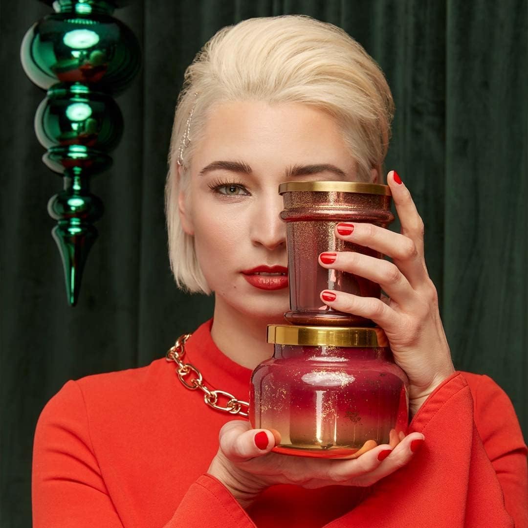 Capri Blue Glimmer Jar Candles - Luxury Holiday Scented Candles for Home - Long Lasting Soy Wax Blend - Scented Holiday & Home Decor - Tinsel & Spice Oversized Jar (28 oz)