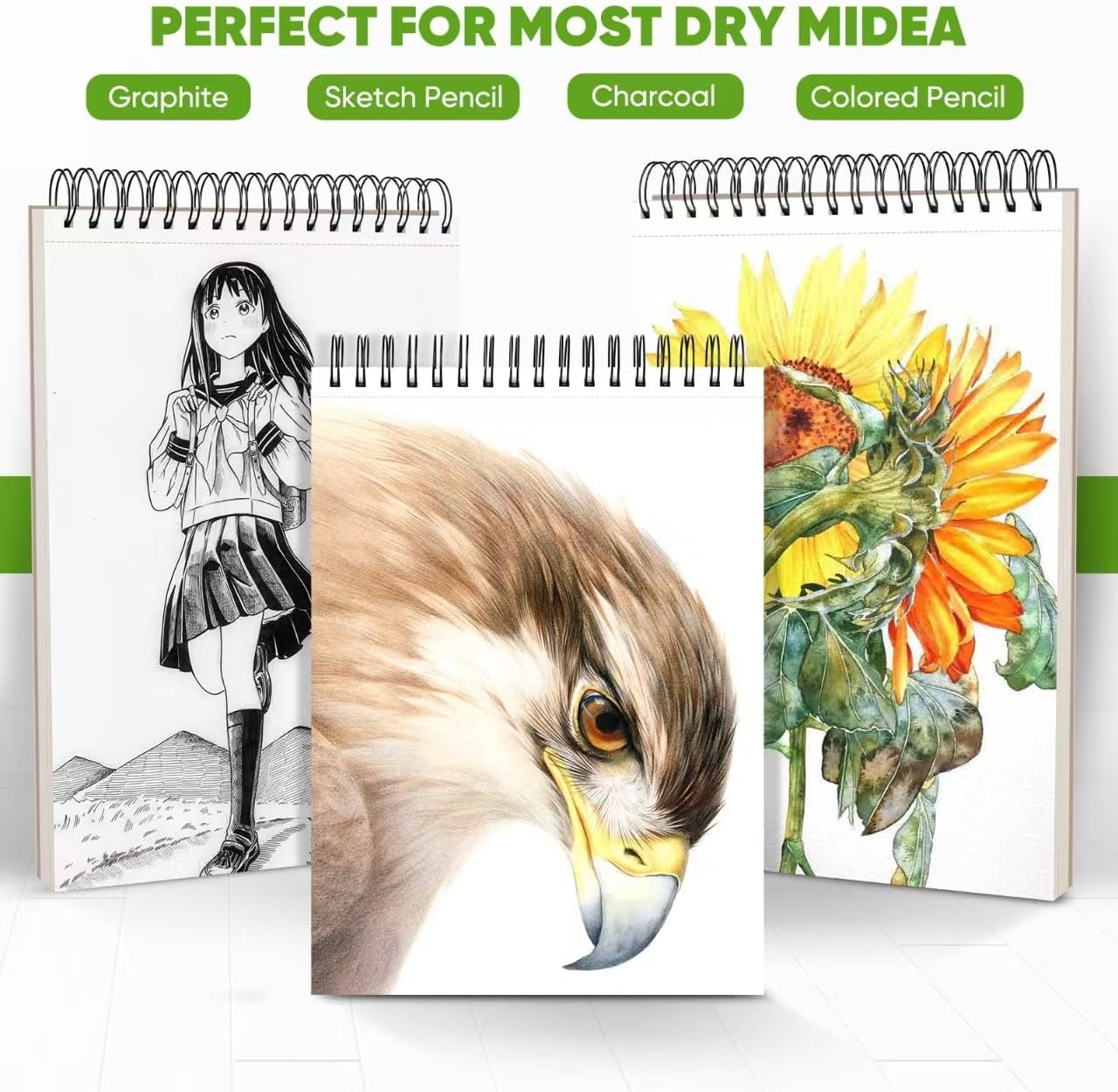 • 【High-quality sketching drawing book pad】This sketching book paper is acid-free and PH neutral with standard-weight 68lb/100gram, which is much thicker and better than the similar sketchbook from other brands. It prevents bleeding, smudging and feathering for clean artwork. Keep your artwork looking great for years to come!
