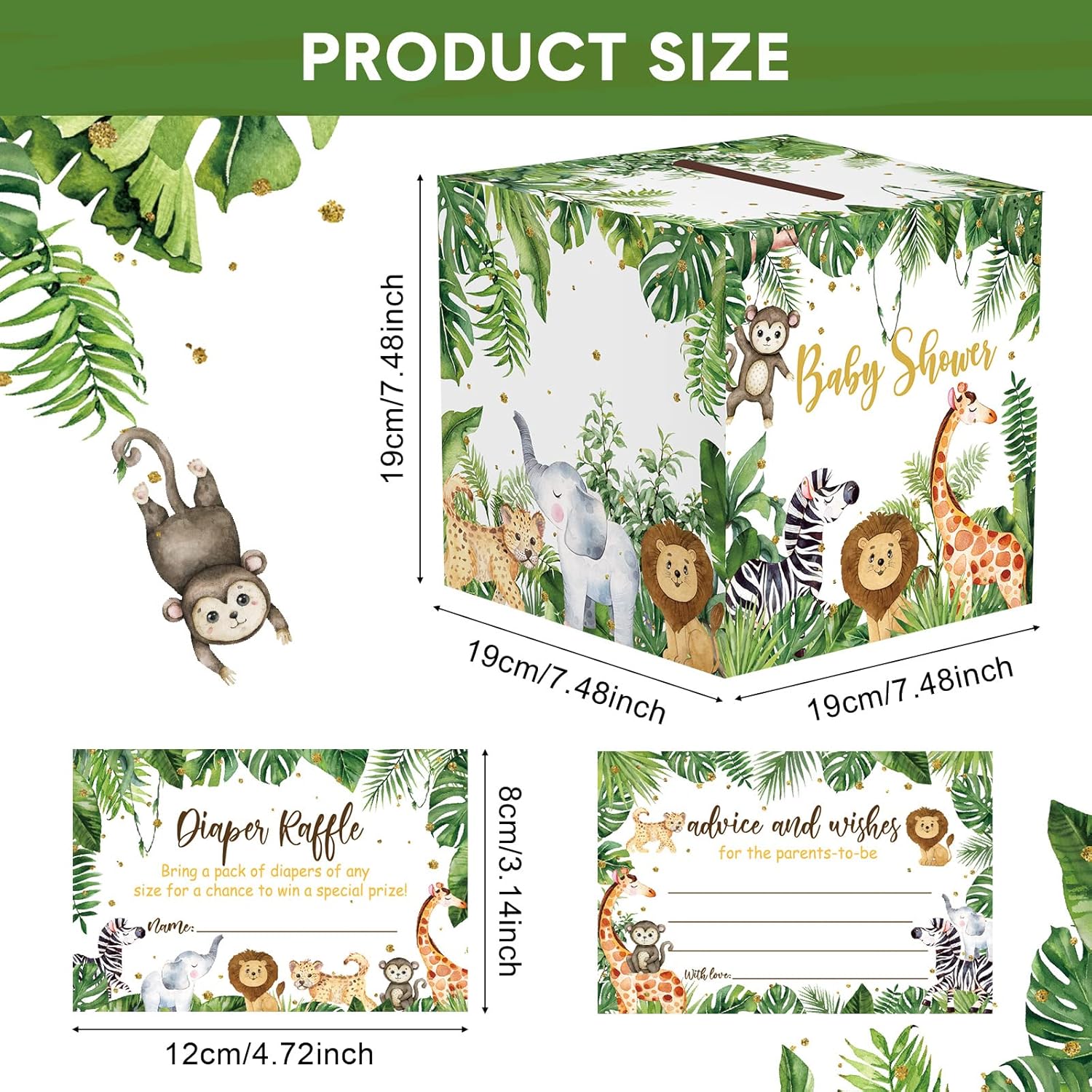• Size details: the jungle baby shower card box measures approx. 19 x 19 x 19 cm/ 7.48 x 7.48 x 7.48 inch and each advice card is about 12 x 8 cm/ 4.72 x 3.15 inch, proper storage and writing space to holder rich wishes from people who are important for you