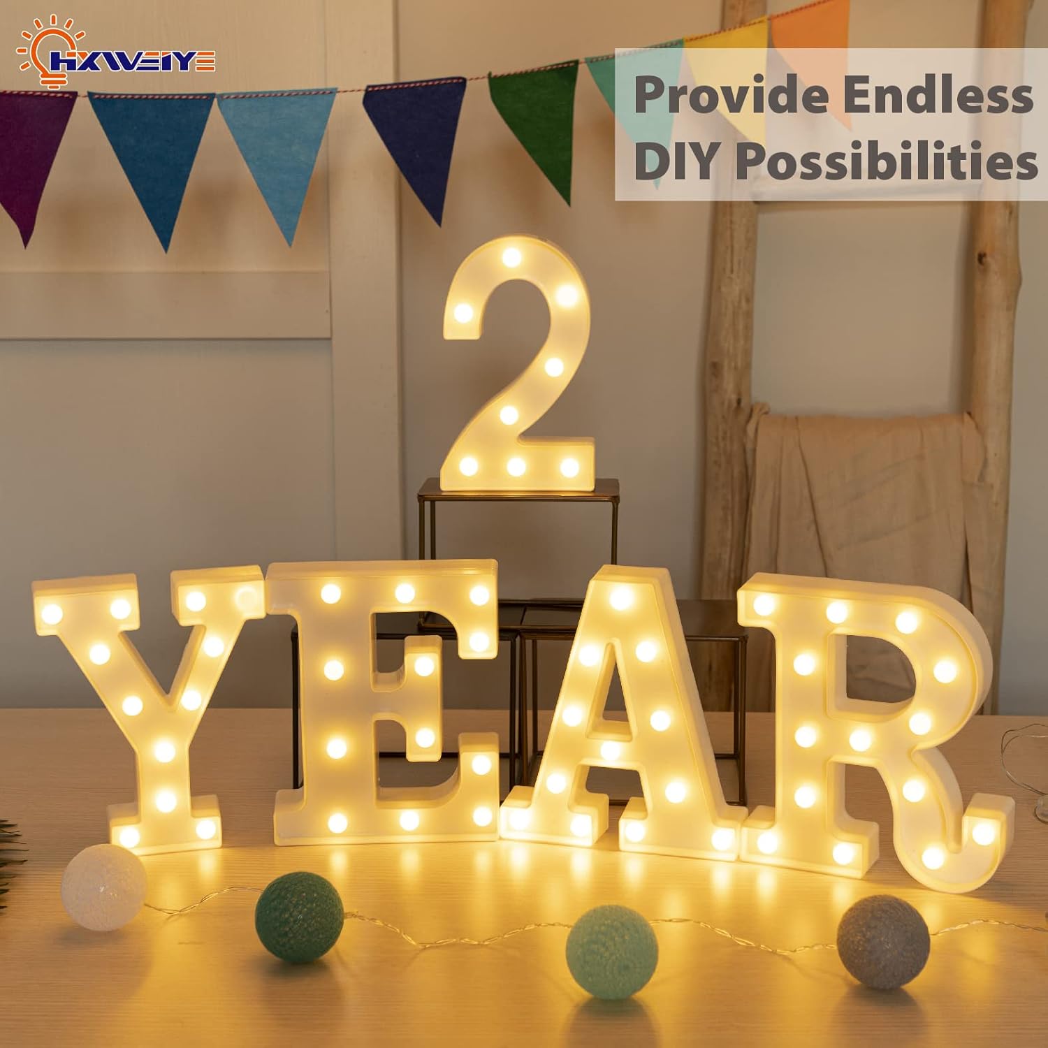 • 【DIY Words Freely】: A-Z alphabet letters, 0-9 Arabic numerals and symbols &, Forming words freely or add themes to different festival and anniversary. Such as spell out “1” on baby’s first birthday, “60” in wedding anniversary, “MERRY ME” “ I LOVE YOU” on making a proposal; HAPPY BIRTHDAY, HAPPY NEW YEAR, HEY 2023, JOY, BAR, MR & MRS, EAT, XMAS, TEAM, CRAZY etc. Light up your favorite words for special occasion, event, or home decorating.