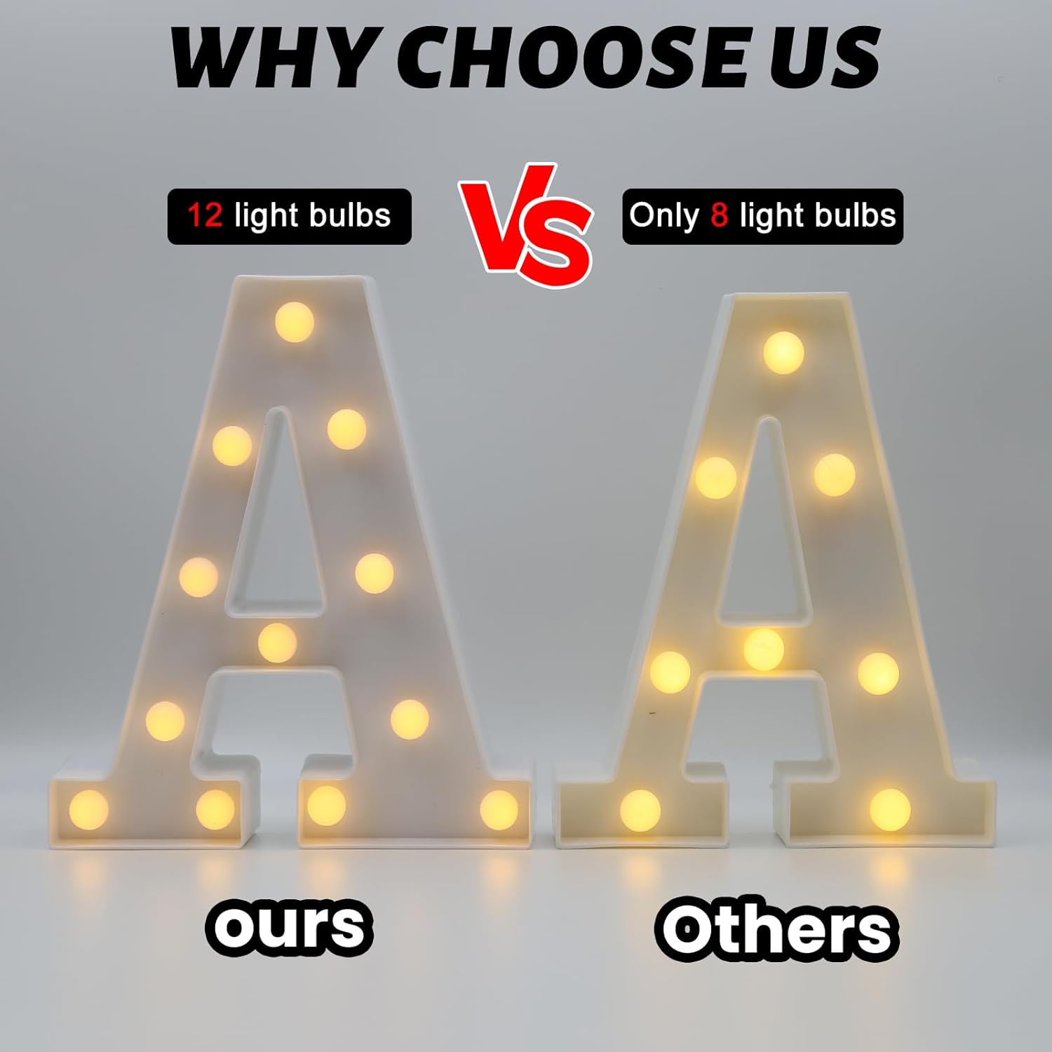 HXWEIYE Light Up Letters A, LED Marquee Letters Lights Sign 26 Alphabet and 10 Number Big Light Letter for Party Birthday Bar Battery Powered Christmas Decor Letter Lights (Warm White)
