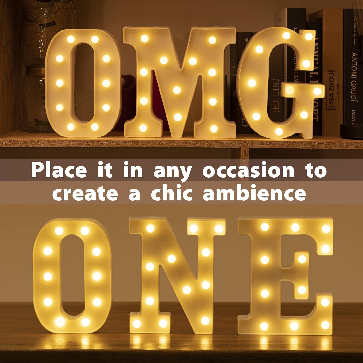 • 【DIY Words Freely】: A-Z alphabet letters, 0-9 Arabic numerals and symbols &, Forming words freely or add themes to different festival and anniversary. Such as spell out “1” on baby’s first birthday, “60” in wedding anniversary, “MERRY ME” “ I LOVE YOU” on making a proposal; HAPPY BIRTHDAY, HAPPY NEW YEAR, HEY 2023, JOY, BAR, MR & MRS, EAT, XMAS, TEAM, CRAZY etc. Light up your favorite words for special occasion, event, or home decorating.