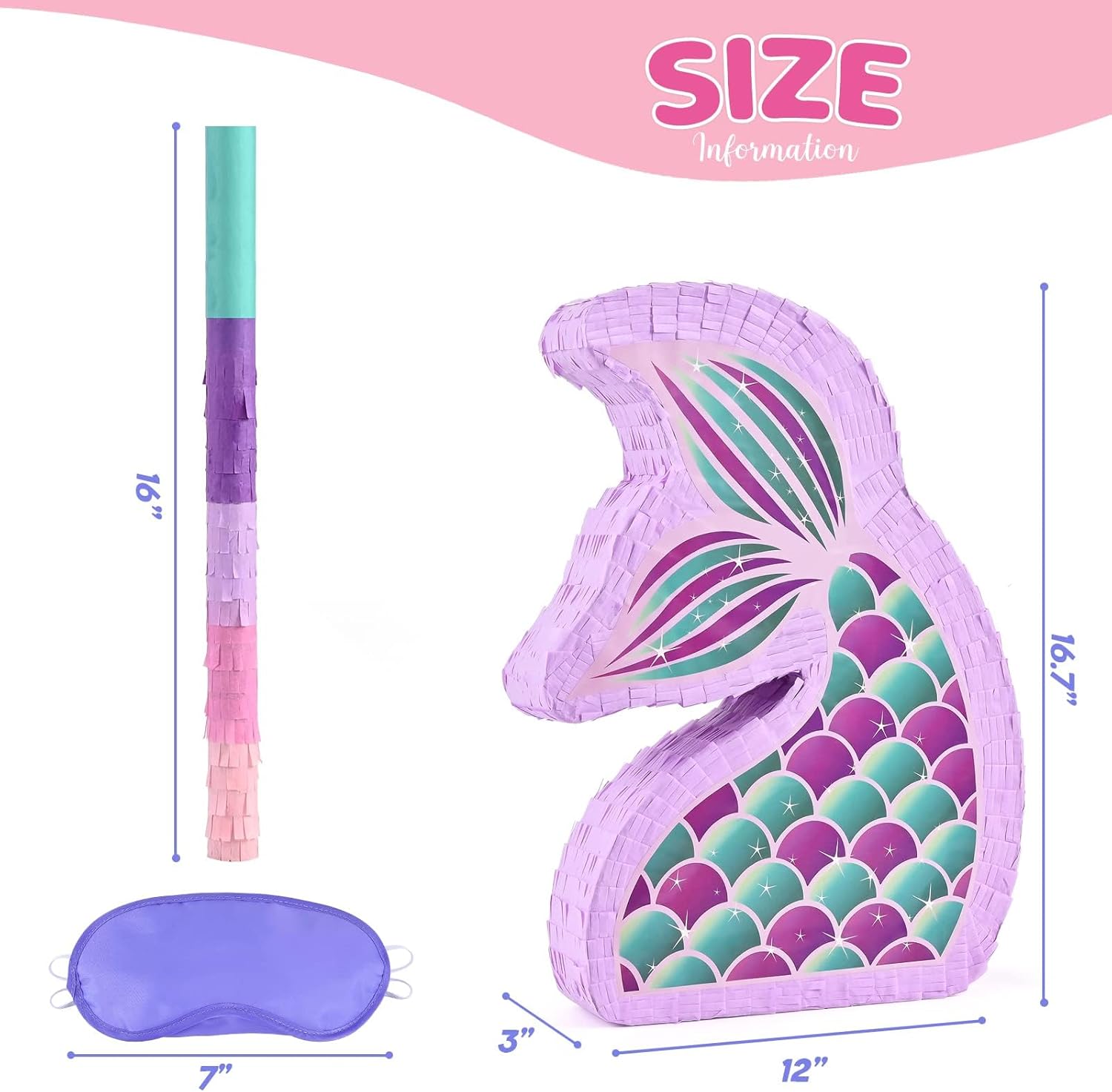 • BIG SURPRISE - This mermaid piñata set includes blindfold and bat. You can use them to start your party game right away without additional preparation. Ideal mermaid party favors for kids!