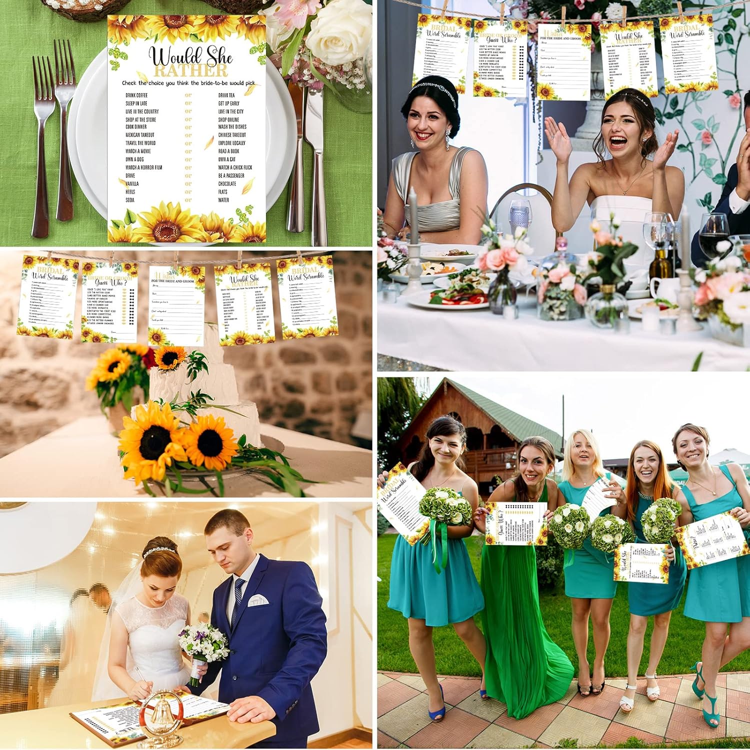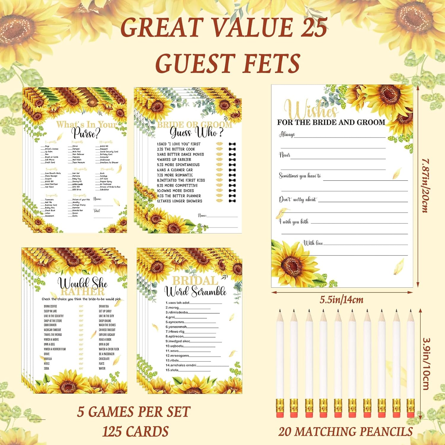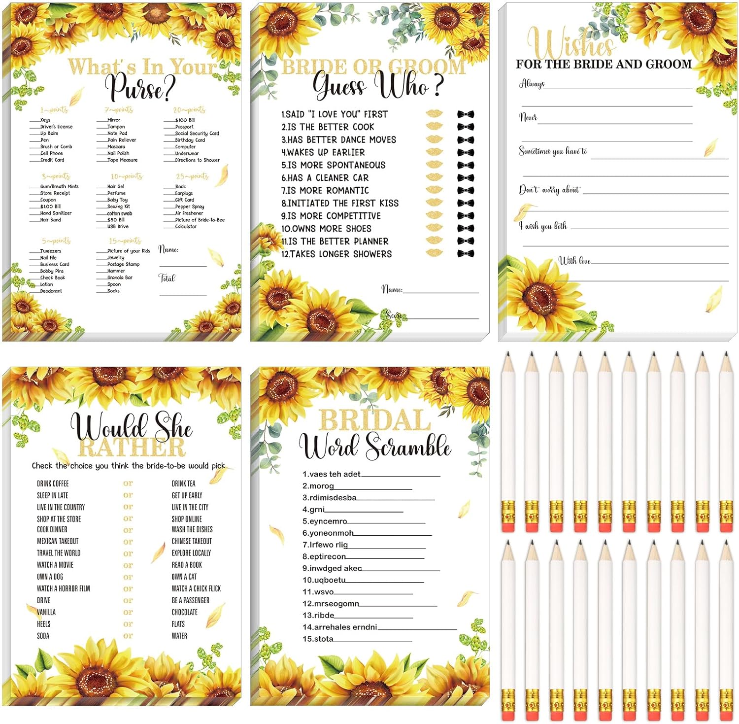Teling 145 Pieces Bridal Shower Game Bridal Shower Favors Set Wedding Games Cards and Pencils for Bride Groom Bachelorette Party Wedding Party Favor(Sunflower Style)