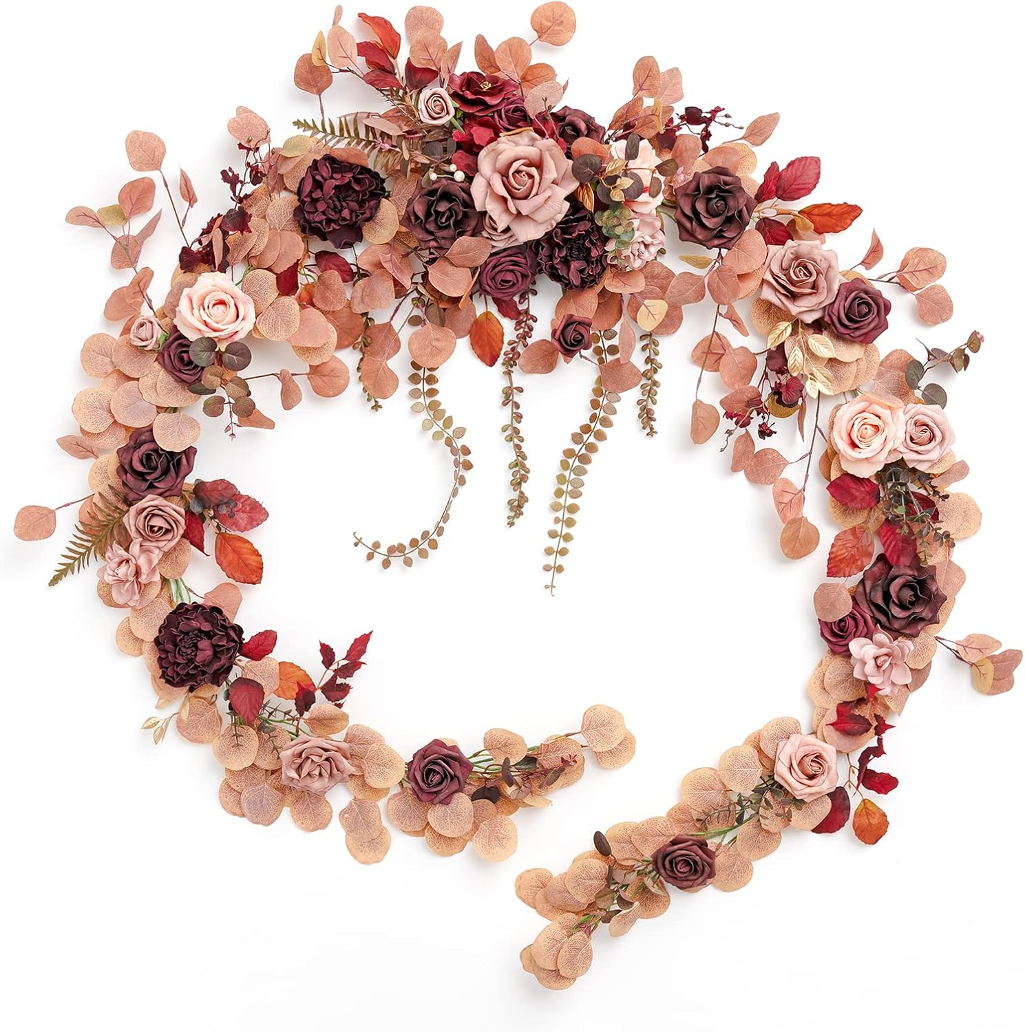 Ling's moment 9FT Eucalyptus and Willow Leaf Garland with White Flower, Handcrafted Wedding Sweetheart Table Centerpieces Head Table Decor Arch Backdrop Decorations for Wedding | Burgundy & Dusty rose