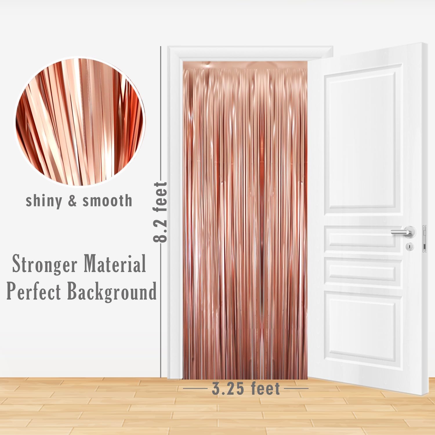 • Package Includes:3 pack matte rose gold foil fringe curtains,3.2 ft x 8.2 ft each,suitable for hanging on a door or coverage a wall fully