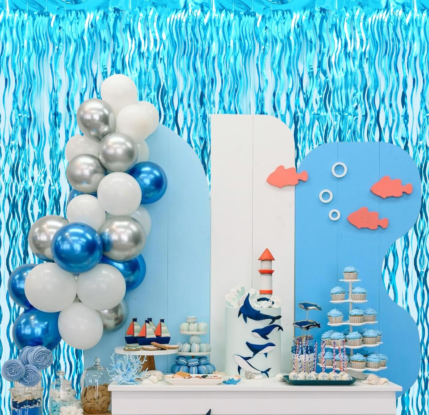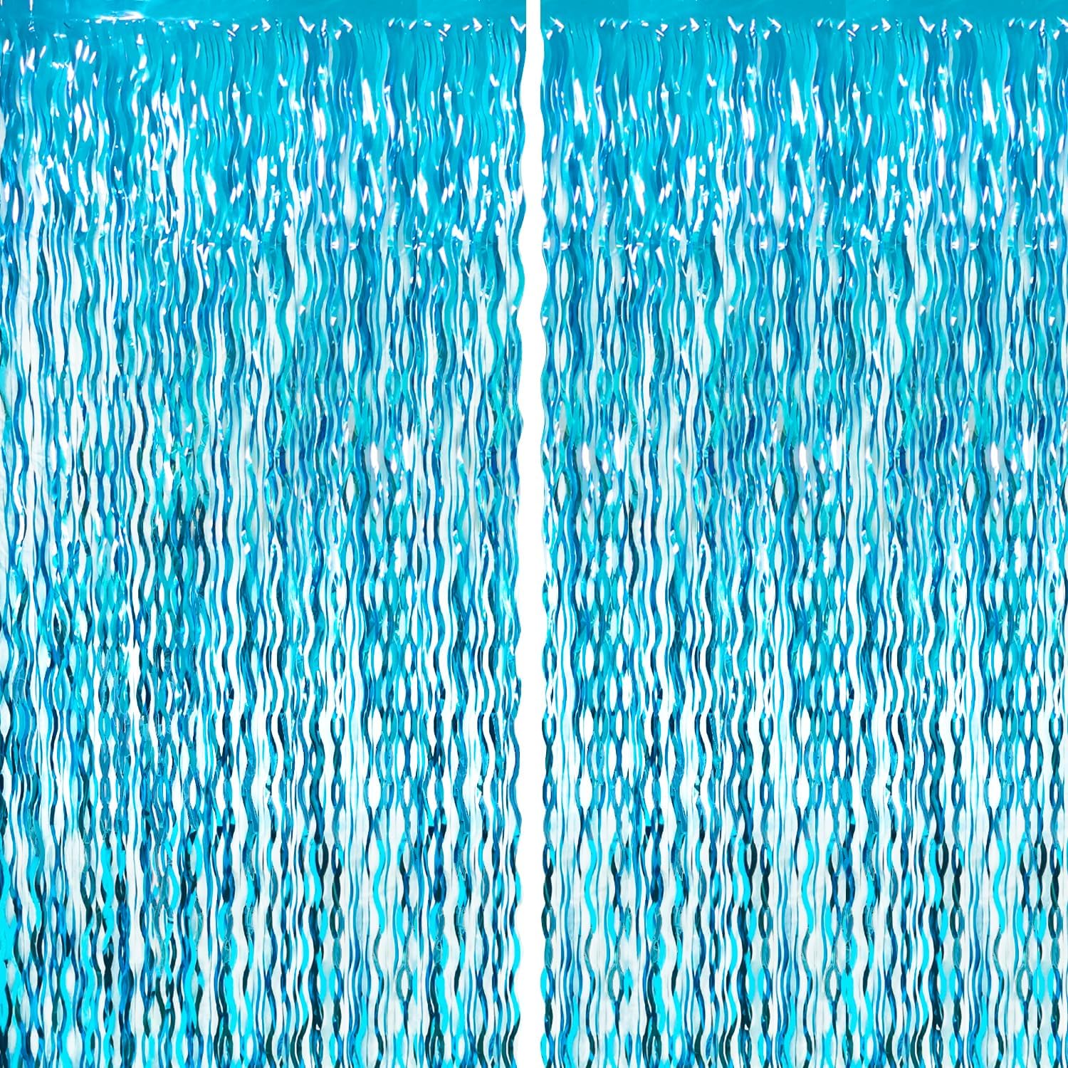 • Package Includes:2 pack wavy light blue foil fringe curtains,3.2 ft x 6.5 ft each,suitable for hanging on a door or coverage a wall fully