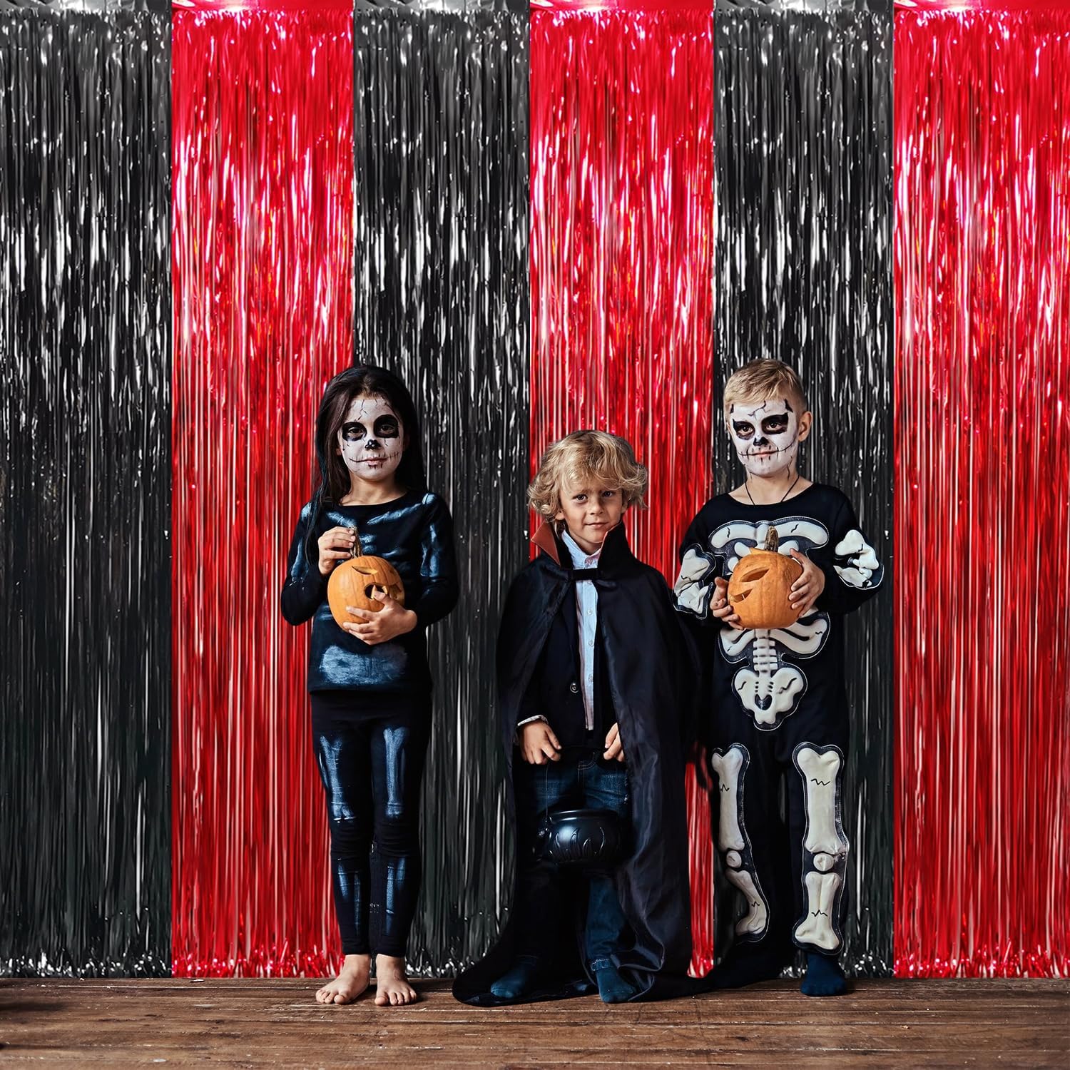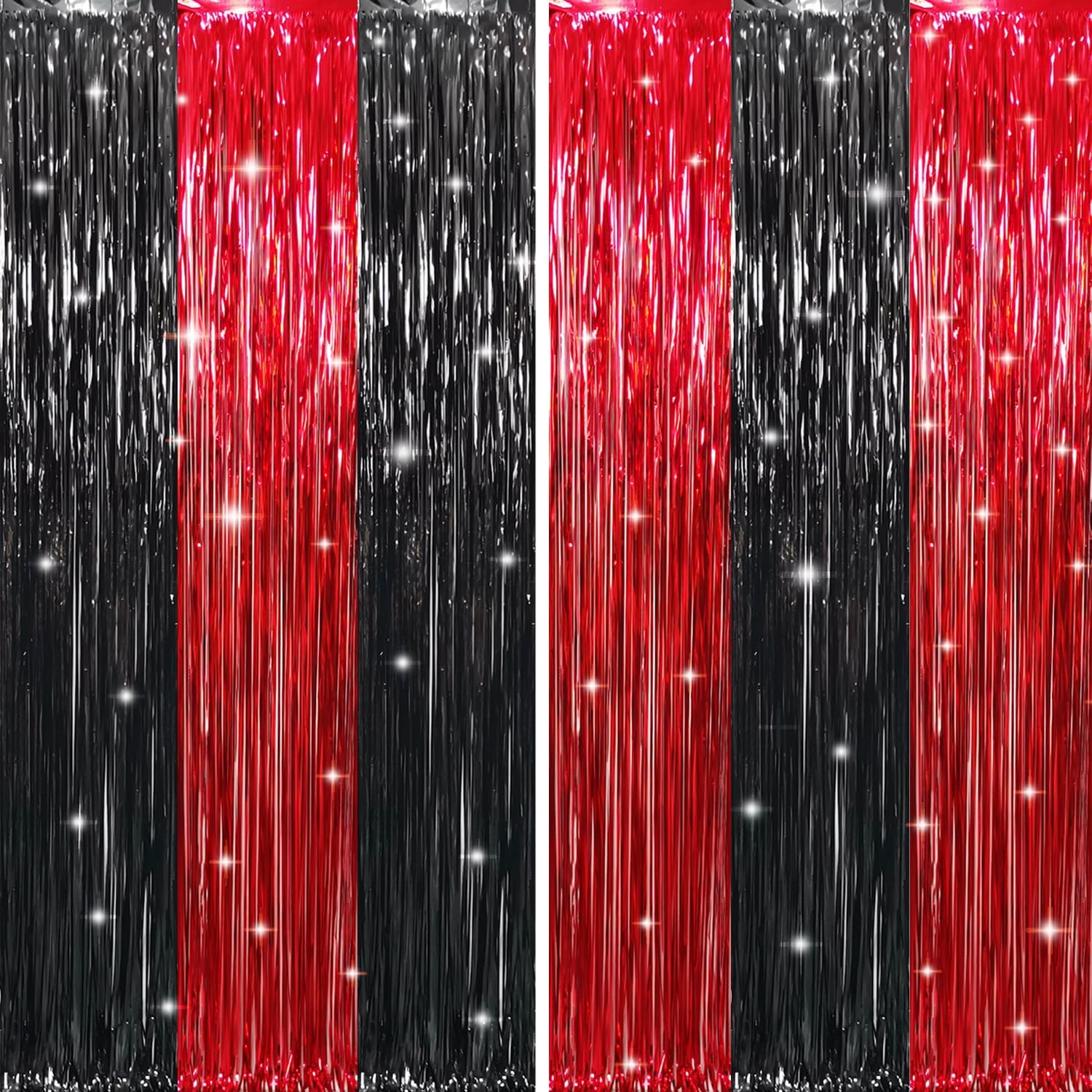 • Package Includes:2 pack Black&Red foil fringe curtains,3.2 ft x 8.2 ft each,suitable for hanging on a door or coverage a wall fully