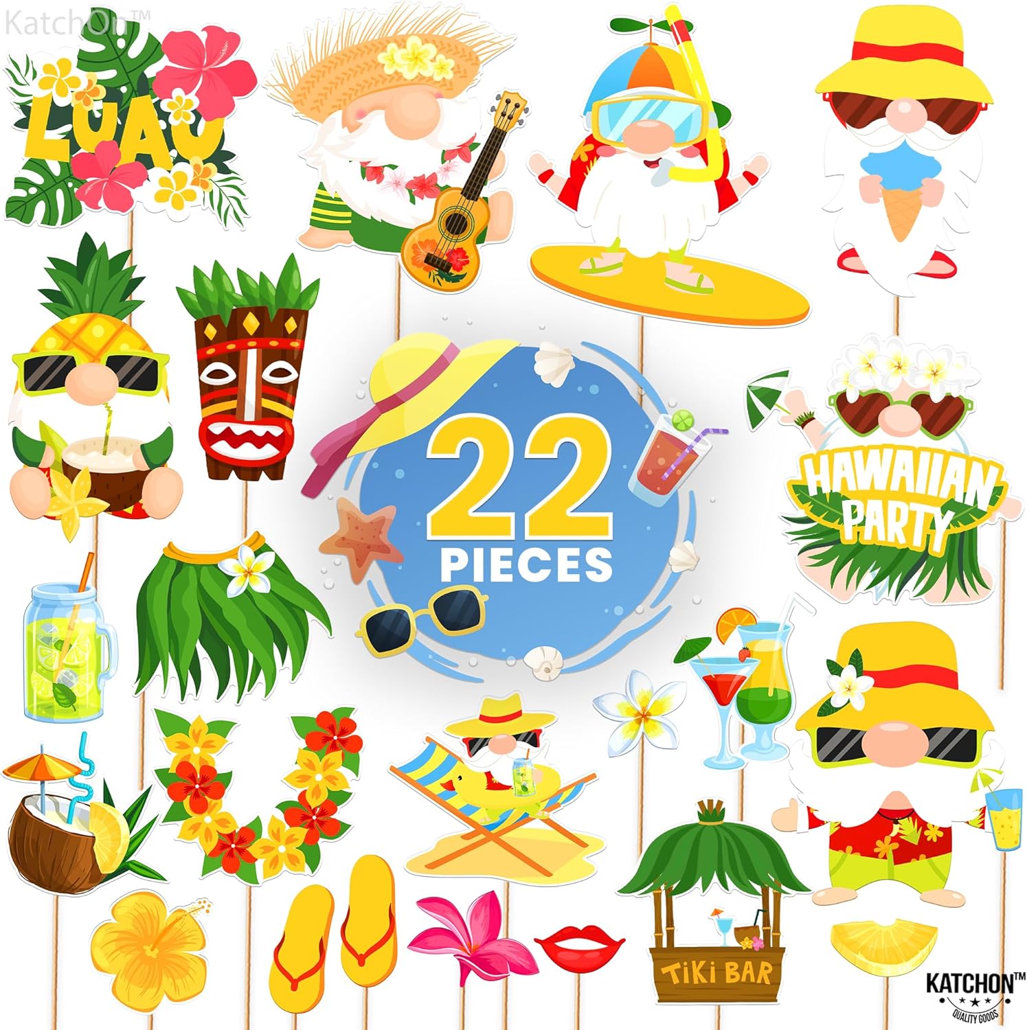 KatchOn, Hawaiian Luau Photo Booth Props - Pack of 22 | Luau Party Decorations | Hawaiian Photo Booth Props for Hawaiian Themed Party Decorations | Luau Photo Props for Hawaiian Party Decorations