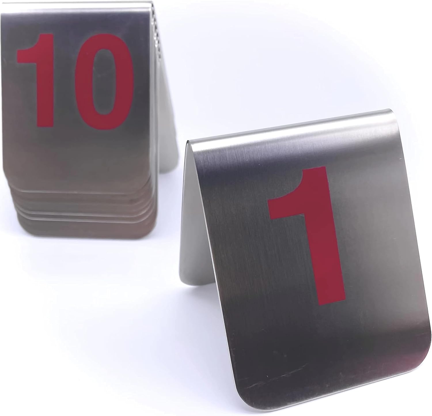 10 Pcs Metal Place Cards Stackable Tent Style Table Numbers,Place Card Holders for Celebration Wedding Party Restaurants Cafes Bars Gatherings meeting Room Board Game Serial (Medium 1-10, Red)