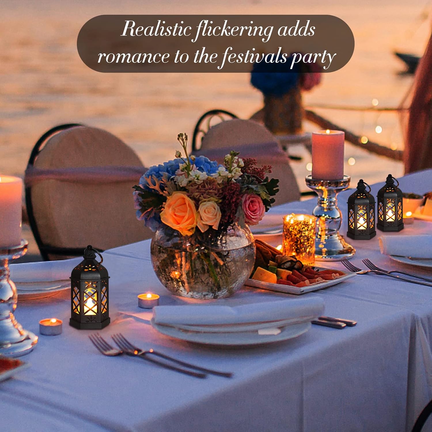 LLQ 12Pcs Mini Lantern with LED Candle, Small Black Lanterns Decorative for Halloween Decorations, Christmas Table Centerpiece, Flickering Candle Holders for Diwali Wedding Medieval Decor, Ornaments