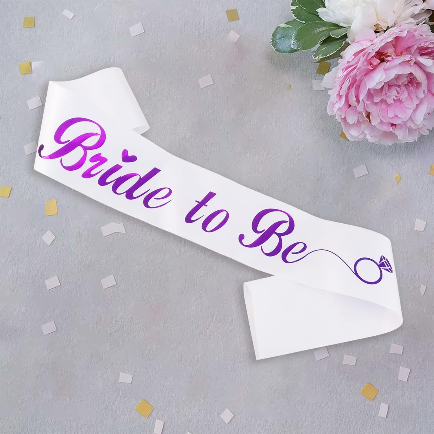 KETAOO Bride to Be Sash, Violet Foil White Lace Bachelorette Sash for Bridal Shower Favors Engagement or Wedding Party Accessories Hen Night Gifts, Bride to Be (White + Violet) (KE0000036)