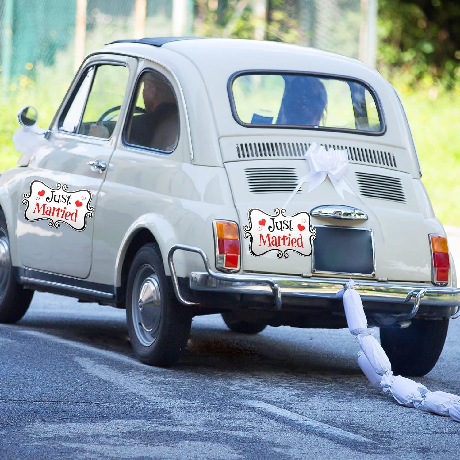 • What you will get: the package contains 2 pieces of just married car magnets with the size of approx.13.97 x 8.85 inches, the proper size fits most styles of cars as well as locations on the body, which is eye-catching and you can see the ornate car magnets even from a distance