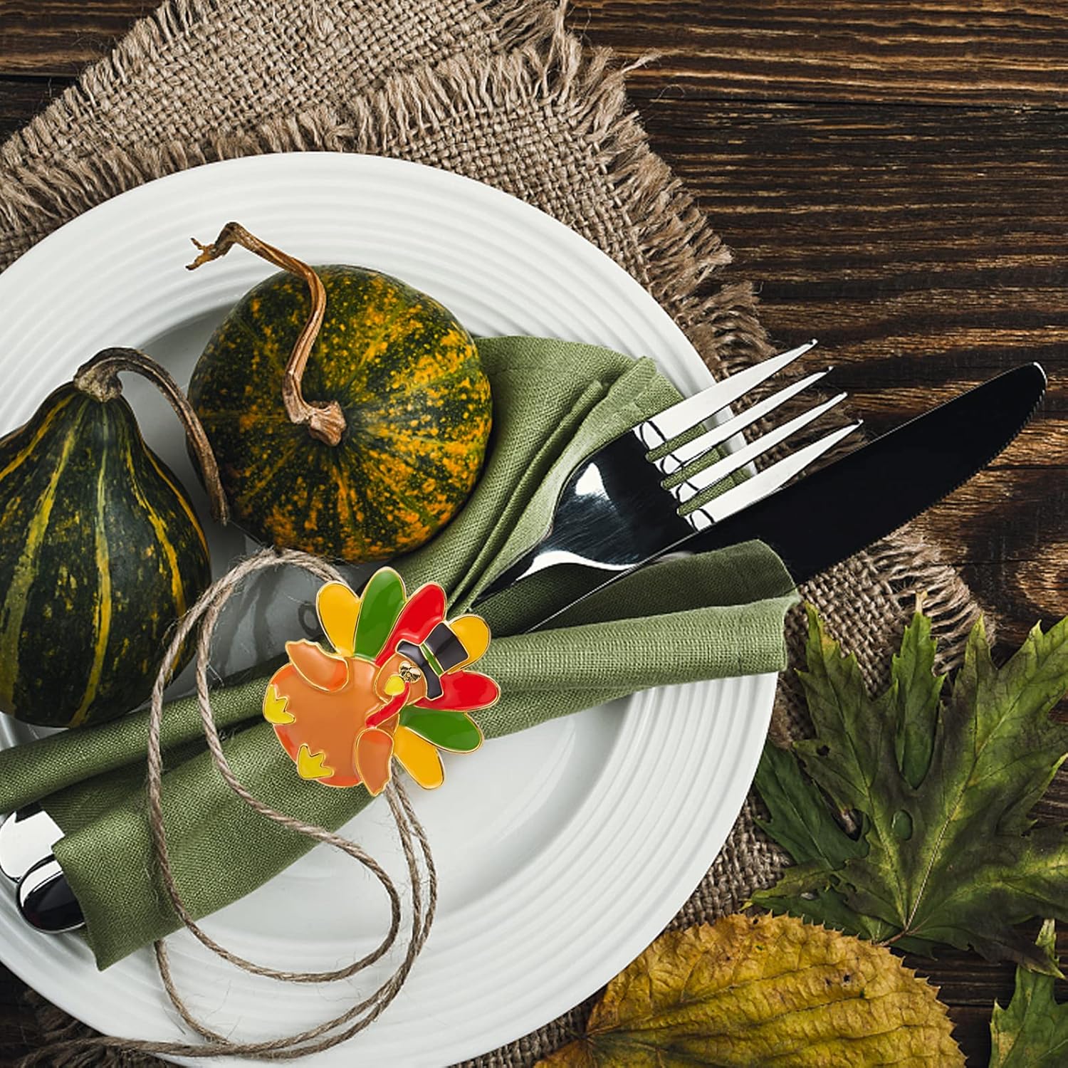 Halatool 8 PCS Thanksgiving Day Turkey Napkin Ring Funny Metal Festival Napkin Holders for Dinner Table Party Decoration