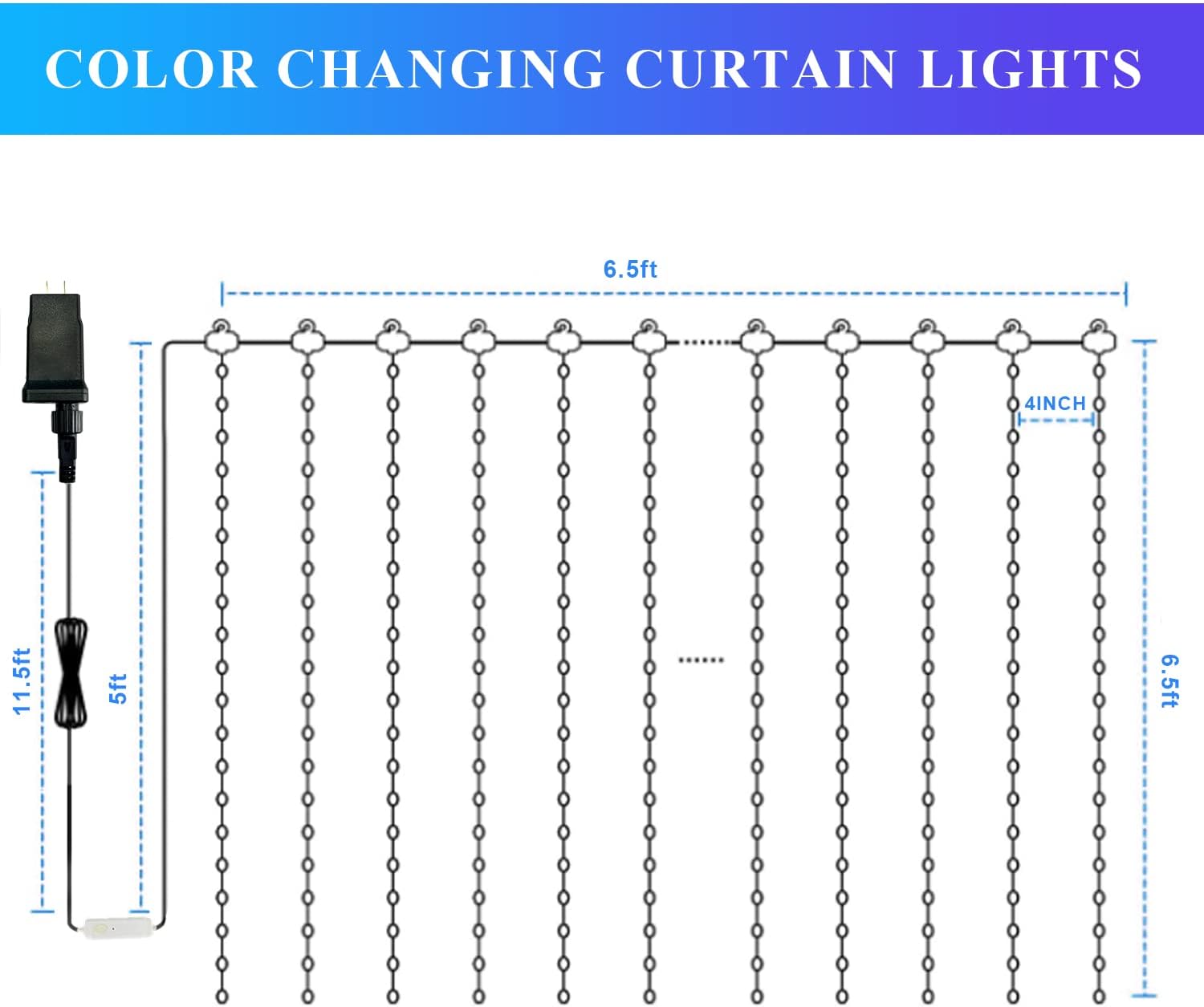 JMEXSUSS App-Controlled Color Changing Curtain Lights, 400 LED RGB String Lights for Halloween, Bedroom, Window, Wall, Party, Backdrop, Christmas, Indoor, and Outdoor Decorations, 6.5x6.5ft