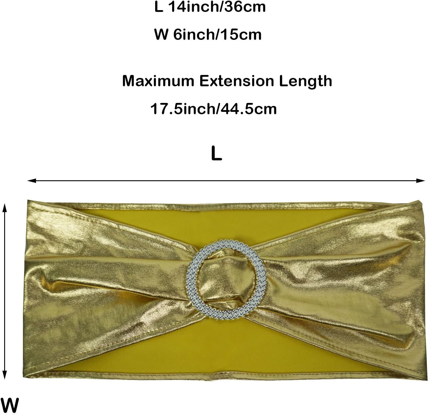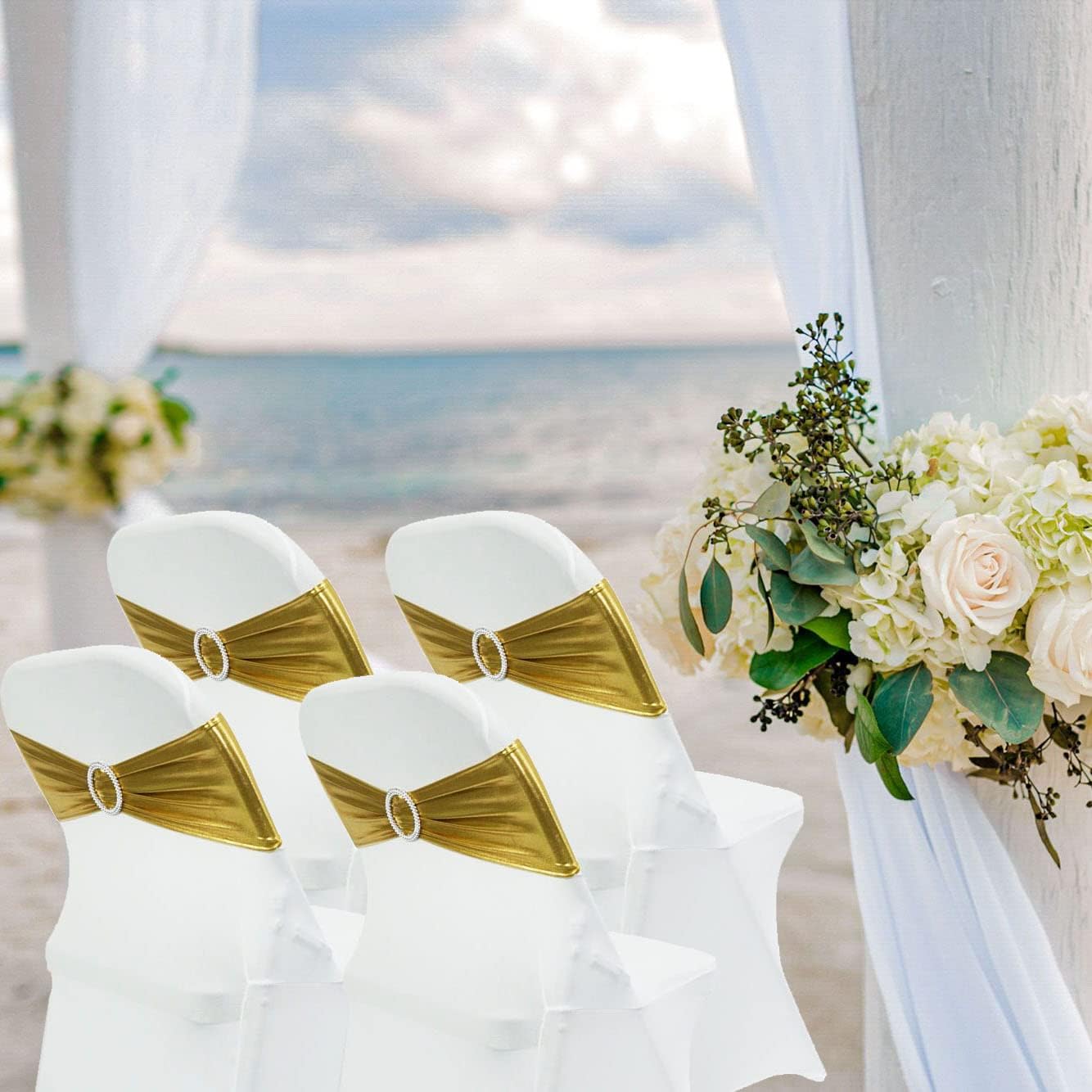 Spandex Chair Sashes Bands 30PCS Stretch Chair Ties Bows with Buckle Slider for Wedding Party Banquet Decoration (Metallic Gold)…