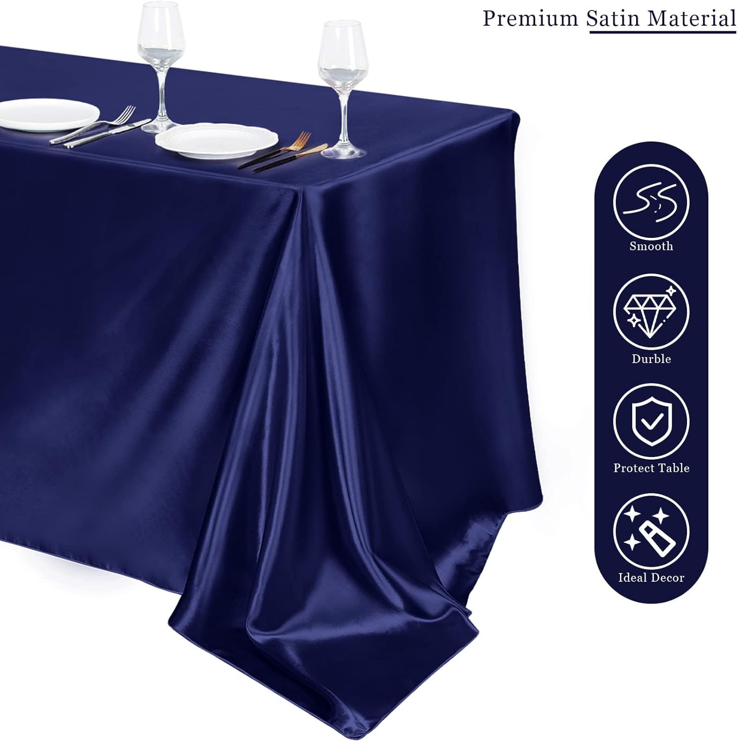 TURSTIN 4 Packs Satin Tablecloth 102 x 58 Inch Overlay Satin Table Cover Rectangle Bright Silk Tablecloth Smooth Fabric Table Decoration for Wedding Banquet Party Events, Navy Blue