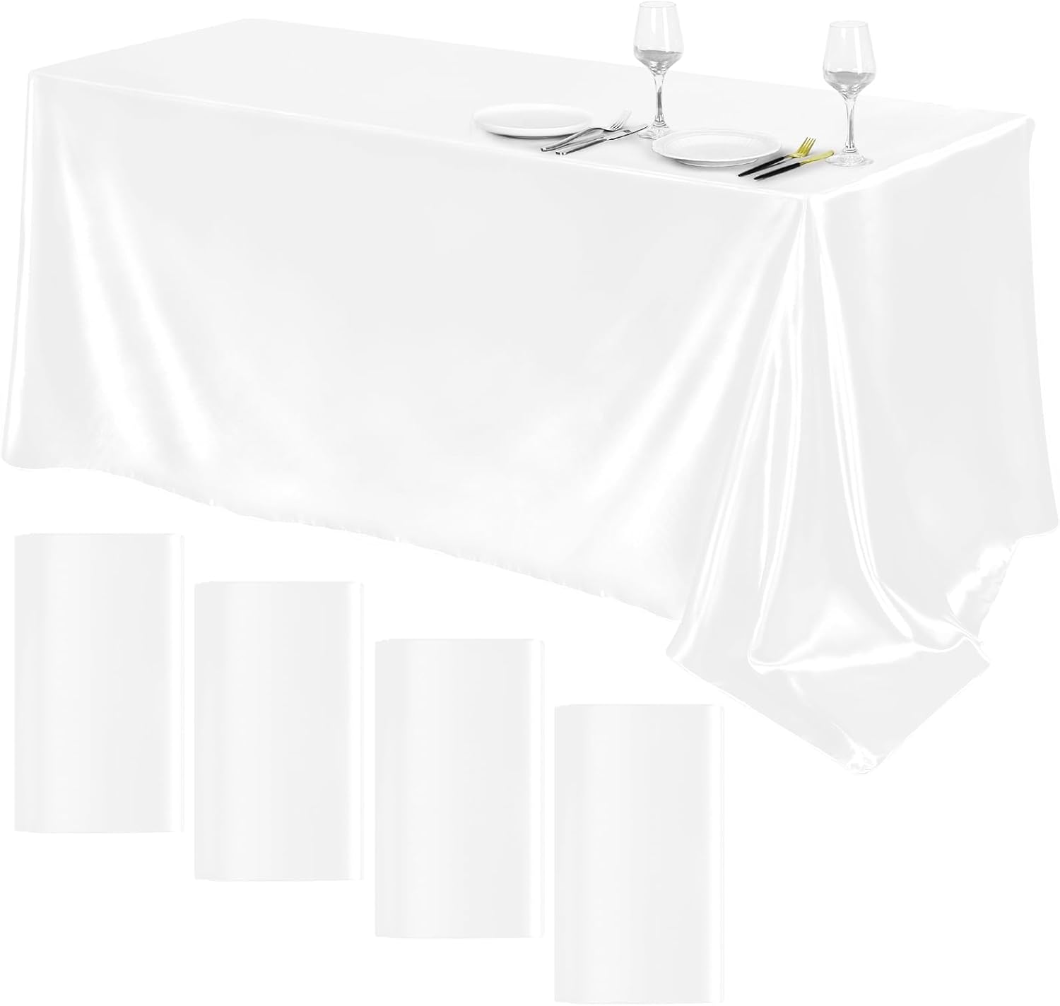 TURSTIN 4 Packs Satin Tablecloth 102 x 58 Inch Overlay Satin Table Cover Rectangle Bright Silk Tablecloth Smooth Fabric Table Decoration for Wedding Banquet Party Events, White