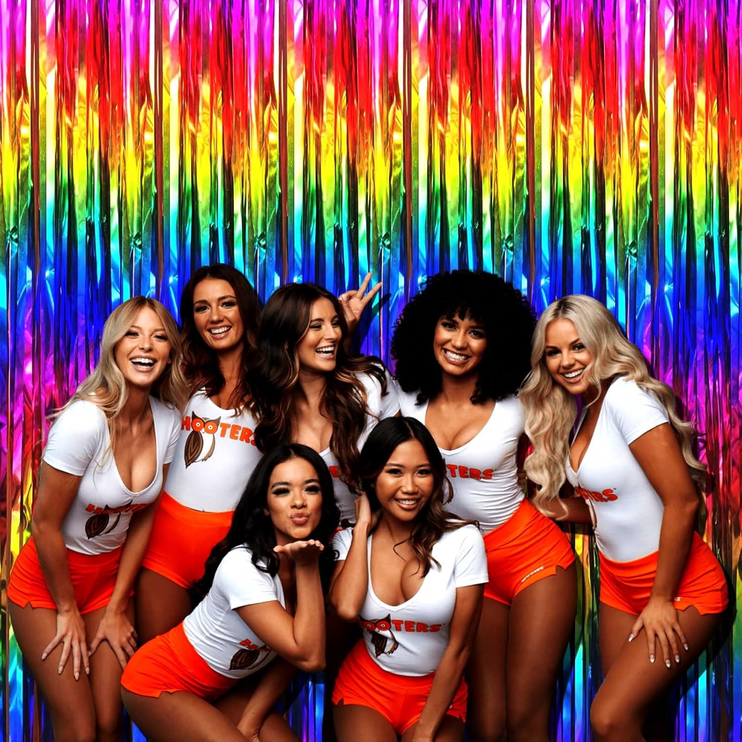 4 Pack Rrainbow Foil Fringe Curtain Backdrop, 3.28Ft x 9.84Ft Colorful Metallic Tinsel Streamers Curtains for Party, Photo Booth Props, Birthday, 2022 Graduation Supplies, One Size