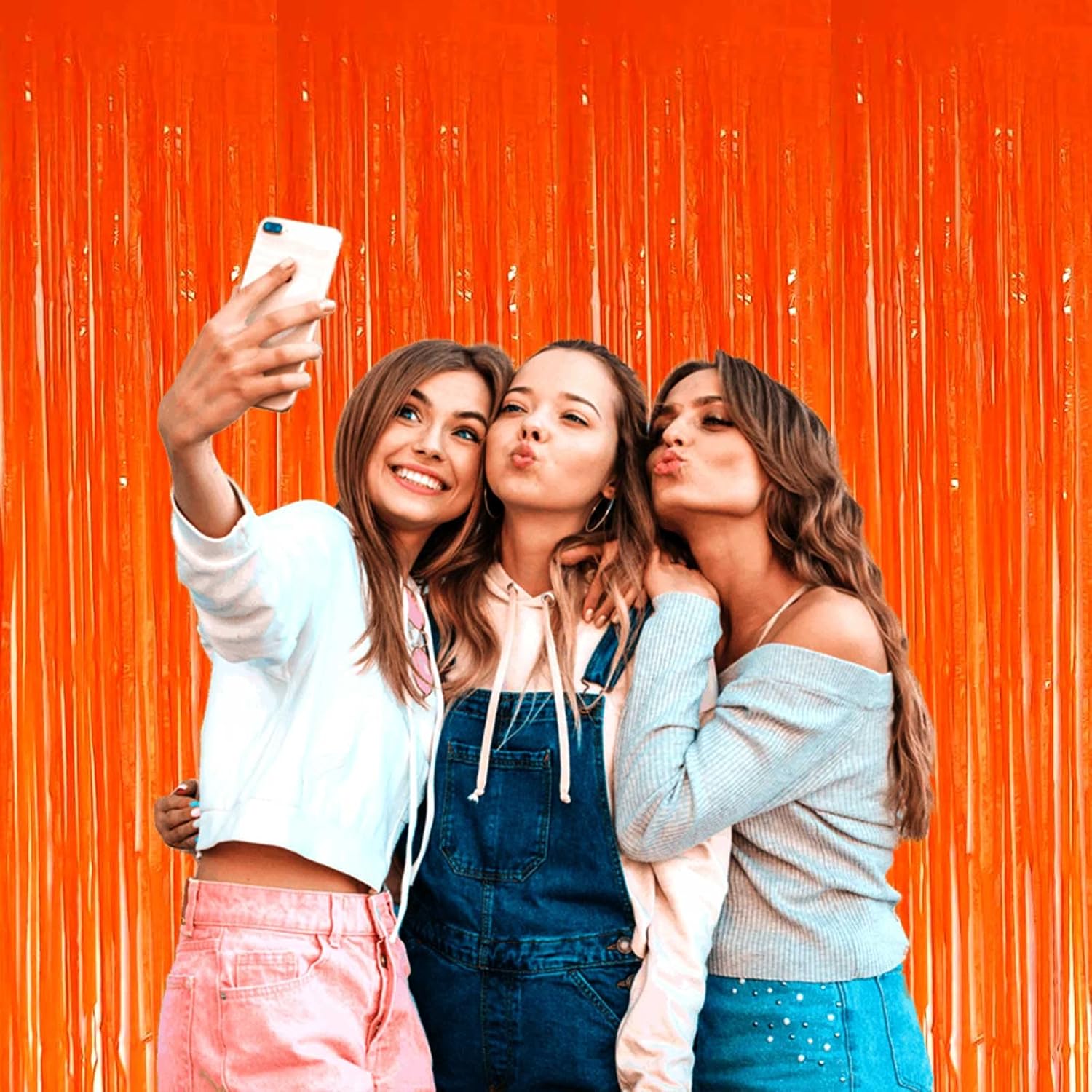 4 Pack Macaron Orange Foil Fringe Curtain Backdrop, 3.28Ft x 8.2Ft Metallic Tinsel Streamer Curtains, Birthday, Wedding, New Year’s, Christmas Decorations Party Supplies, One Size