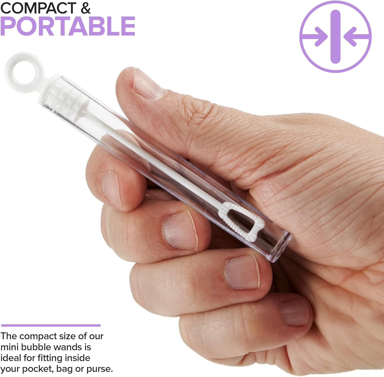 • Leak-Resistant: Our tops are designed with a rubber stopper that prevents fluid from leaking out of the tubes. The compact size of our mini bubble wands is ideal for fitting inside your pocket, bag or purse.