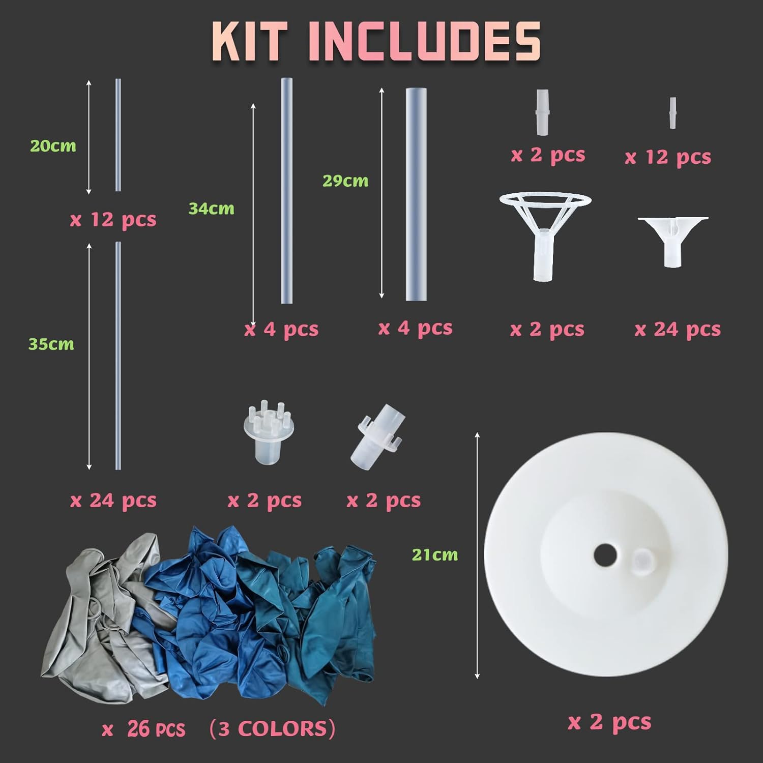 • Included Components : 2 Sets of Balloon Stands, Different Height Sizes, Thickened Rod and Joint, Base, Tying Tool