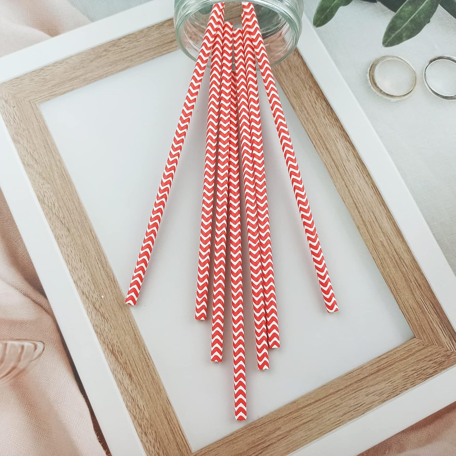 • ๐ŸŽ€Includes 100 pcs Red Waves Striped party Paper Straws.