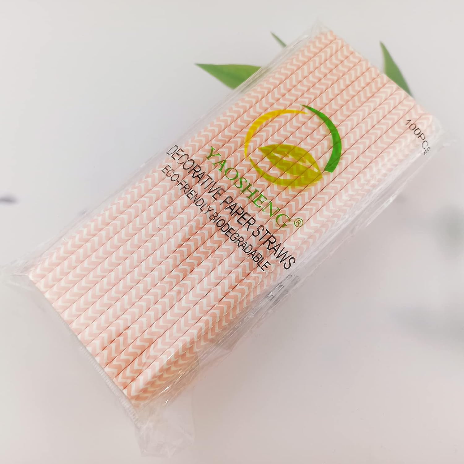 YAOSHENG Premium Disposable Waves Striped Drinking Paper Straws, Pack 100 Pink Waves Paper Straws for Cocktail Party Supplies,Birthday,Bridal/Baby Shower,Juice,Shakes (Pink Waves)