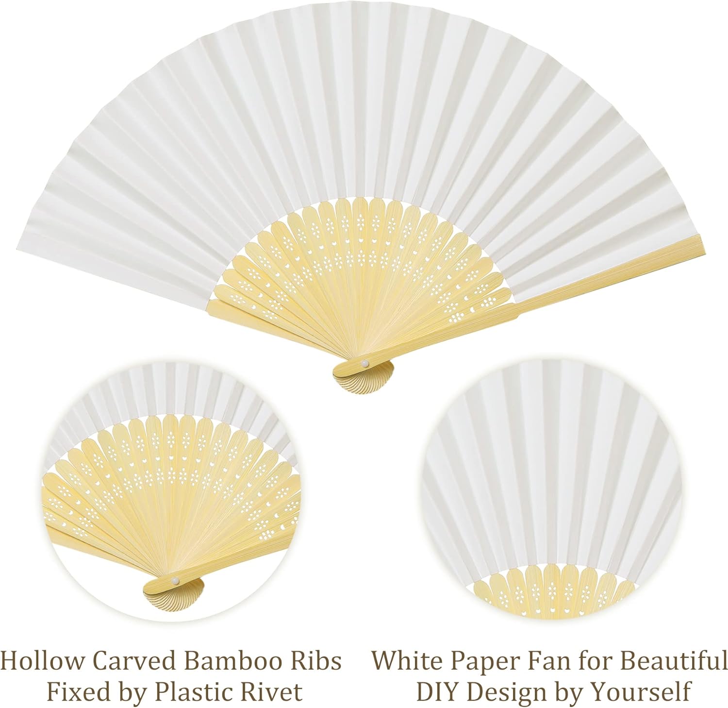 • Package Includes: You will receive 100 pieces of white paper hand fans, and each folding fan is well protected in OPP individual package.