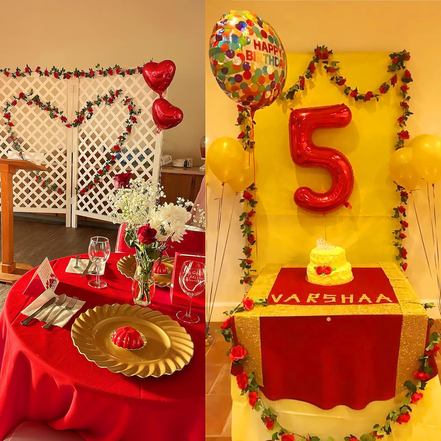 UKELER 2 Pack 14FT Artificial Rose Vines Red Flower Garland Artificial Rose Flowers with Green Leaves Floral Plant for Wedding Arch Party Garden Craft Home Decor